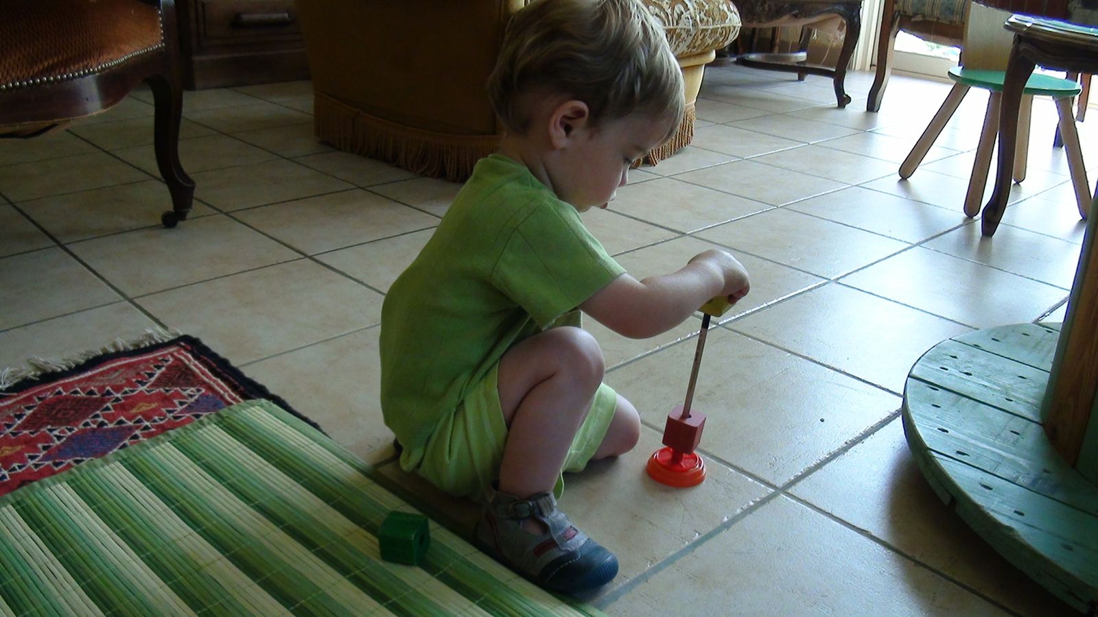 Je le lui ai donc proposé le lendemain en mettant les pions dans une boîte et ce fut un succès ! Il a mis consciencieusement toutes les perles sur les piques. Il était très fier de lui !
