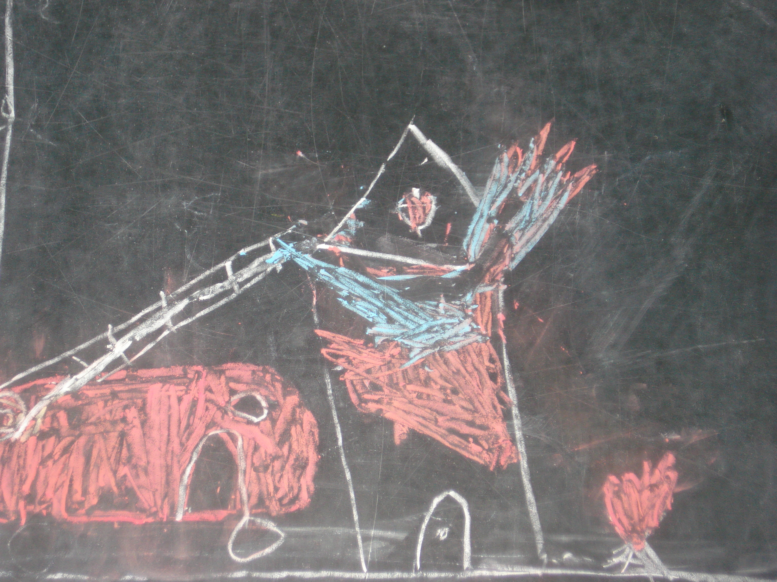 En matière de films, il y a plusieurs années, Baptiste s’était beaucoup amusé à faire ses petits dessins animés. Soit il dessinait à la craie sur un tableau noir (ce qui est très pratique car il photographiait son dessin, effaçait ou rajoutait un détail, prenait une autre photo, etc.)