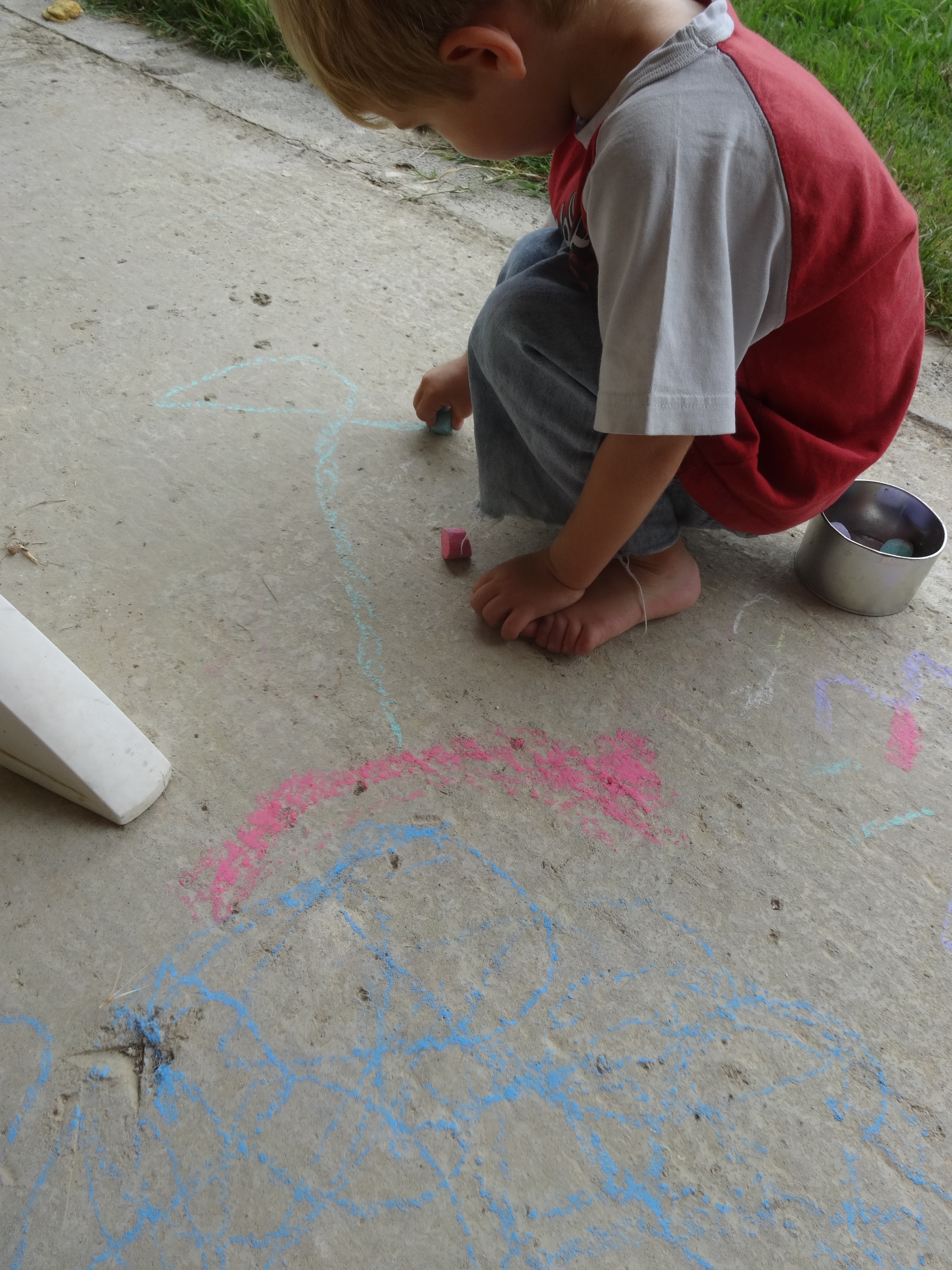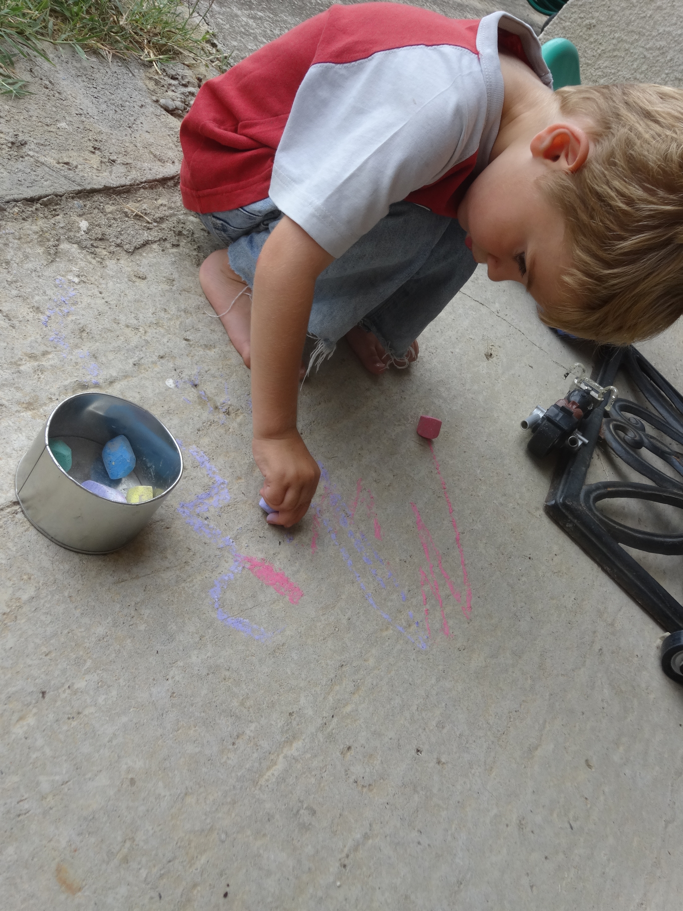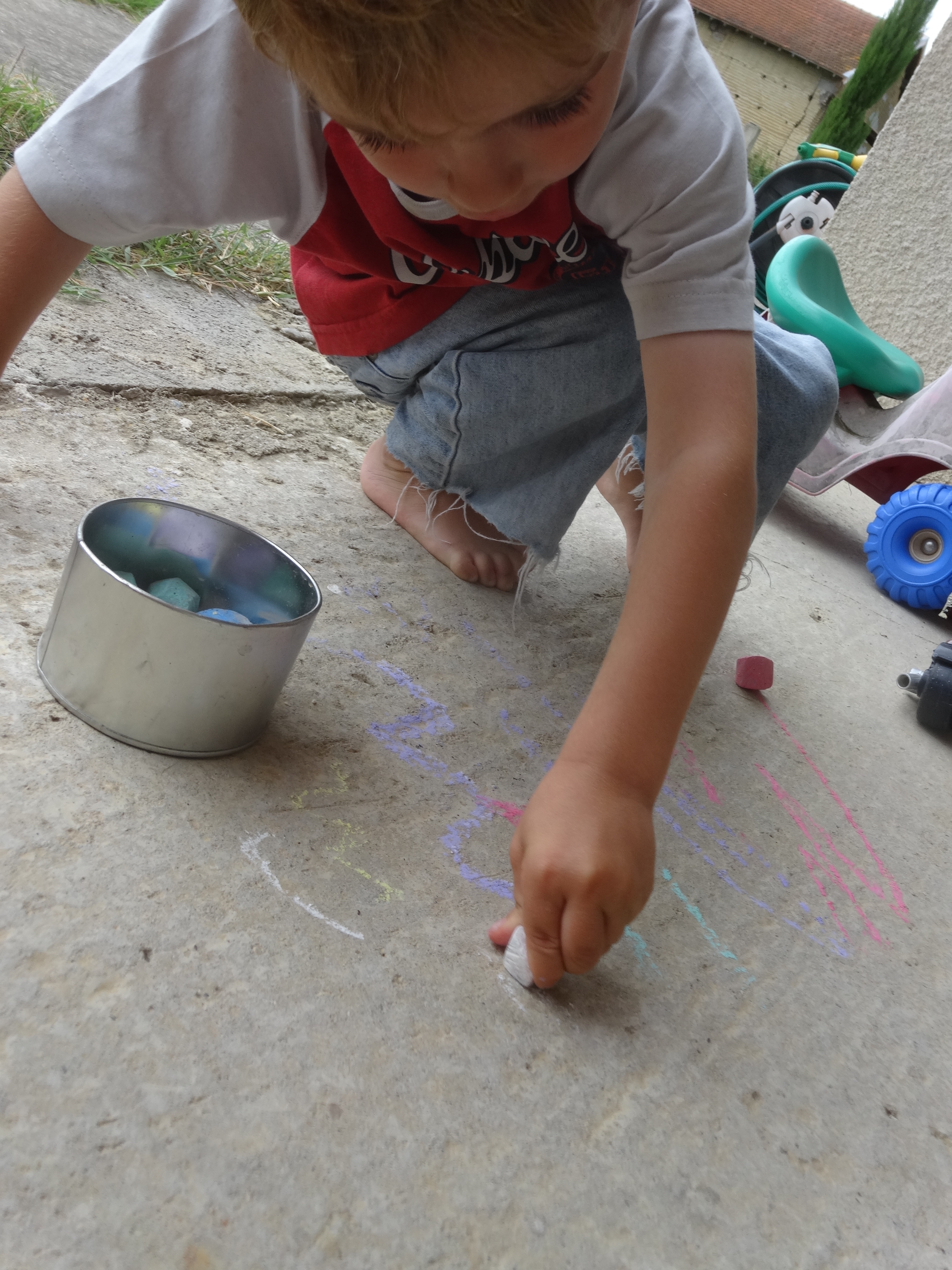 L’autre jour, j’essayais désespérément de faire un peu de jardinage mais j’avais mon Noé qui me tournait autour et qui voulait que je joue avec lui. (Ben oui, les grands n’étaient pas là pour jouer avec lui !)