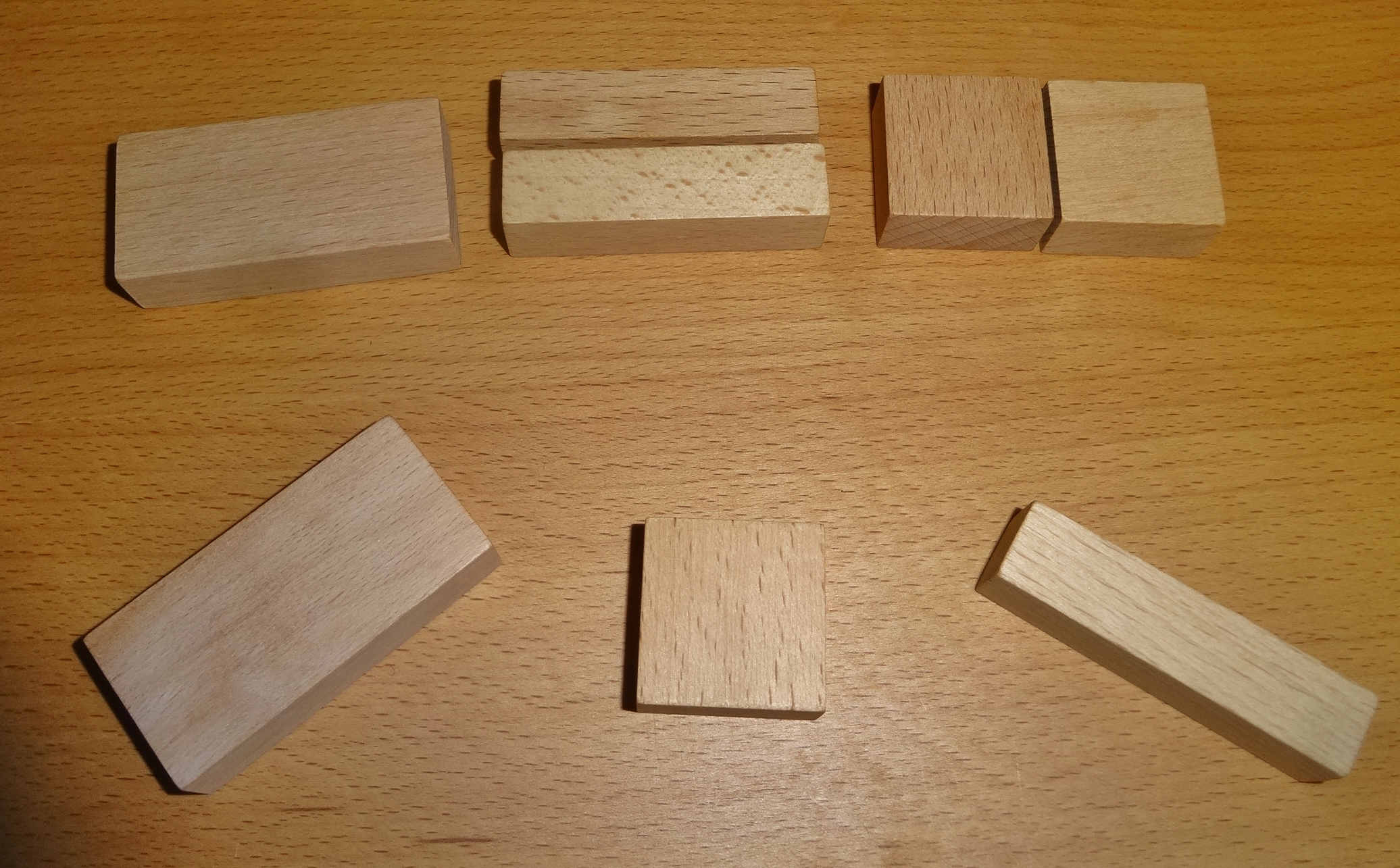 Le don 5B : 12 cubes, 12 demi cylindres et … 8 formes dont je ne connais pas le nom. Il y a aussi les 12 petits prismes triangulaires.