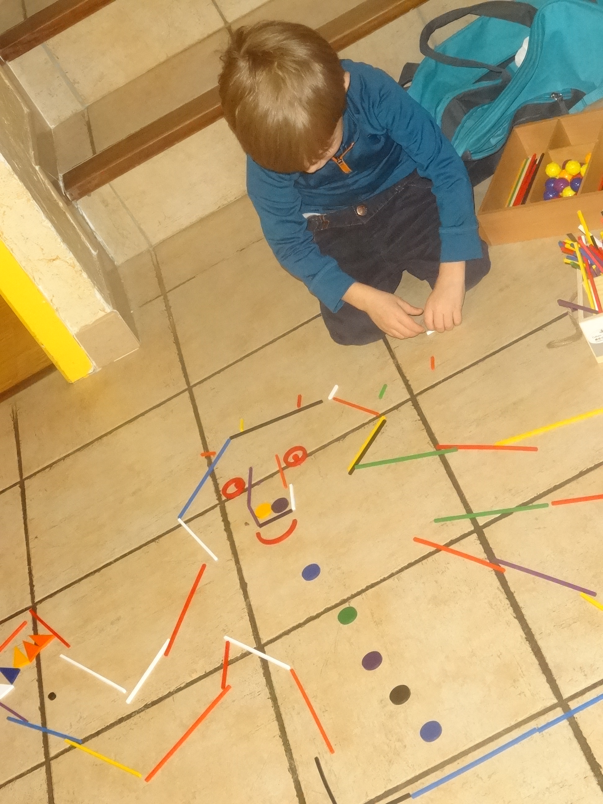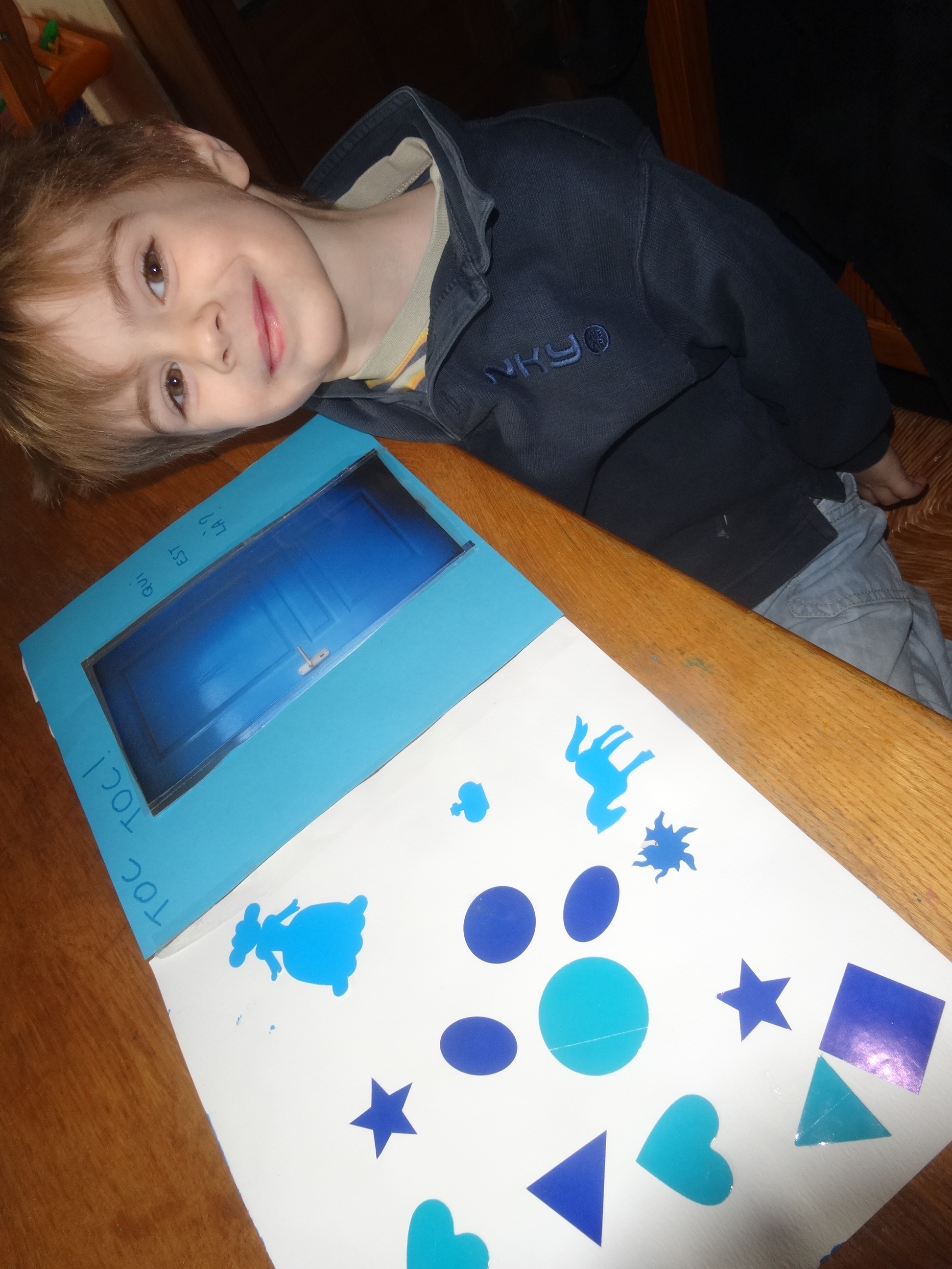 Un autre jour, Noé avait cherché dans ses gommettes toutes les gommettes bleues et les avait collées.