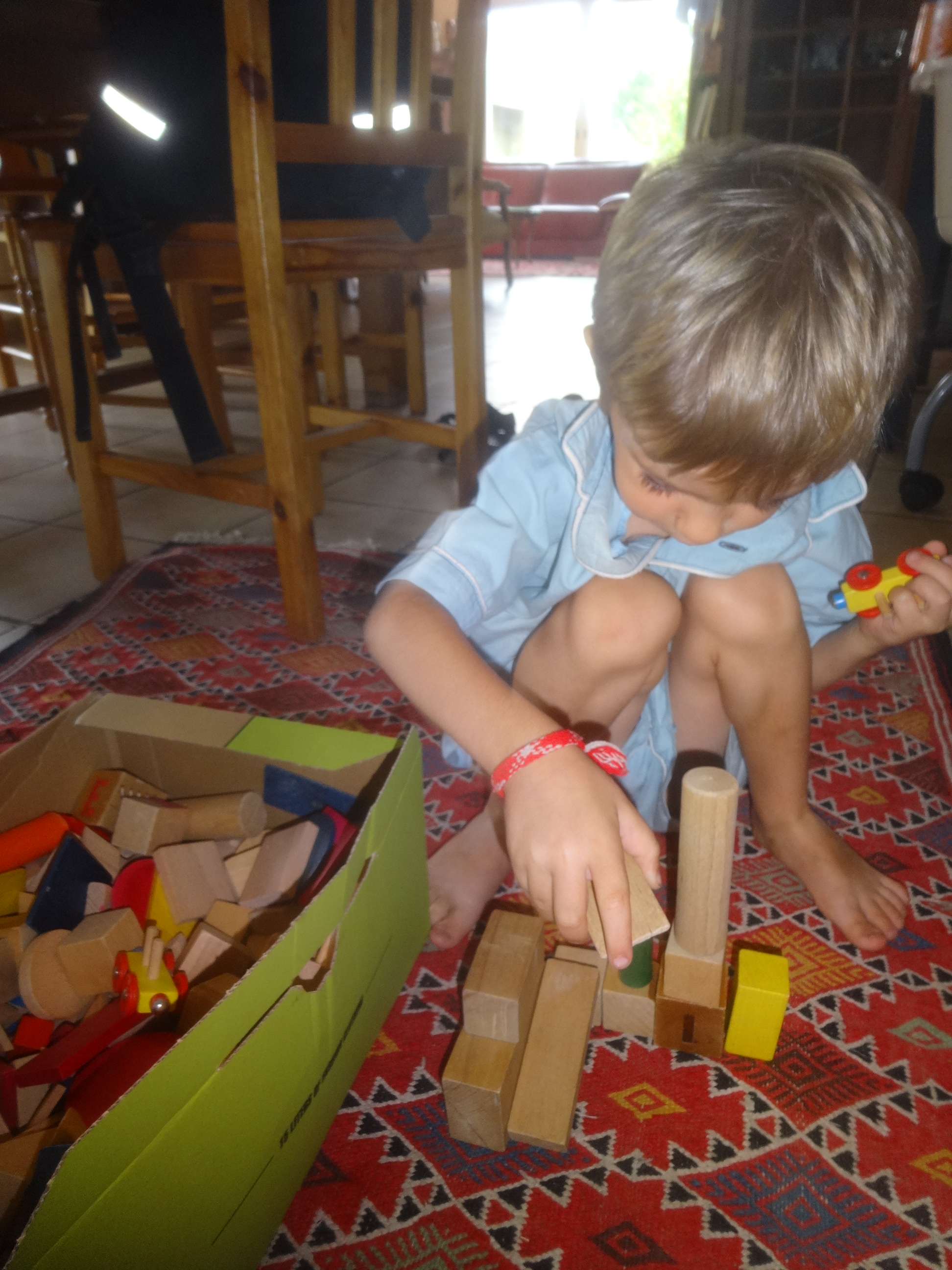 Le papi des enfants a trouvé ce trésor aux Puces pour trois fois rien : plein de cubes et formes en bois.