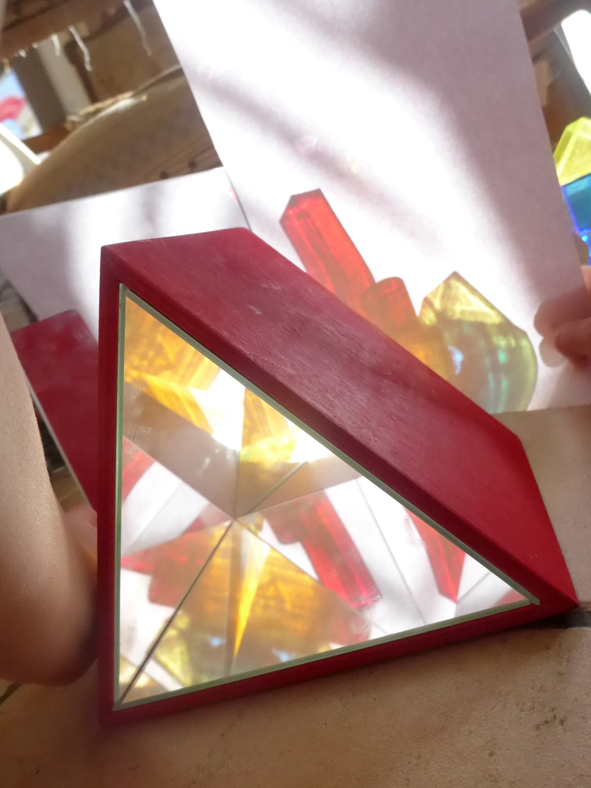 Et puis le prisme a été utilisé comme kaléidoscope bien sûr ! Quelques solides à l’intérieur …