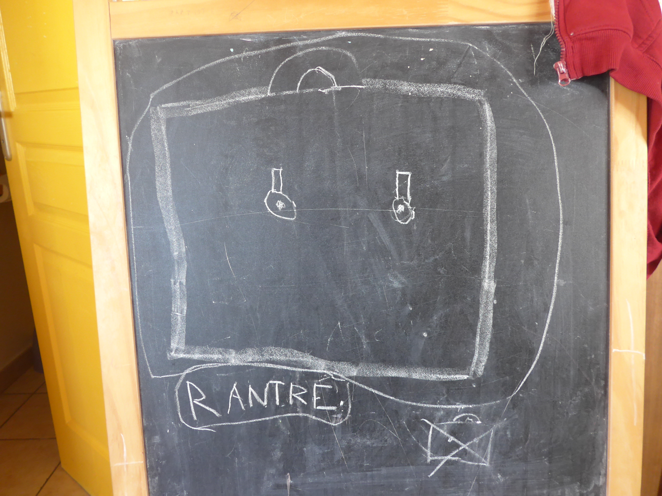 En ce moment, Noé aime beaucoup écrire sur notre tableau noir les grands événements de la période (il faut dire que c’est ce que fait souvent son grand frère Baptiste !)