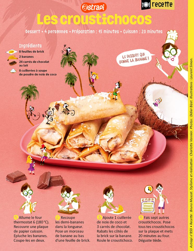 Les magazines Bayard sont aussi souvent de sortie pour faire des recettes simples et bonnes : les croustichocos d’Astrapi à la banane et au chocolat
