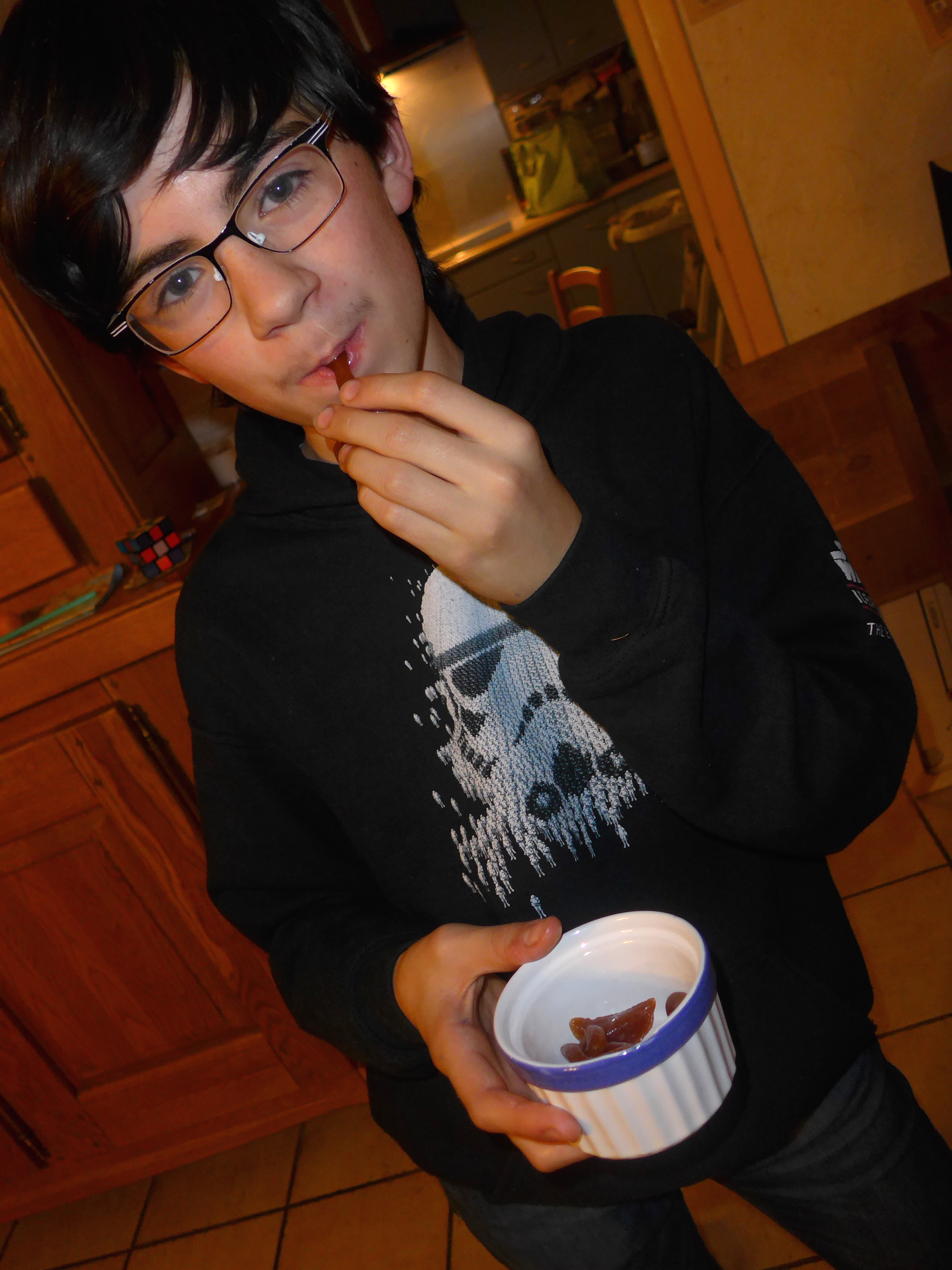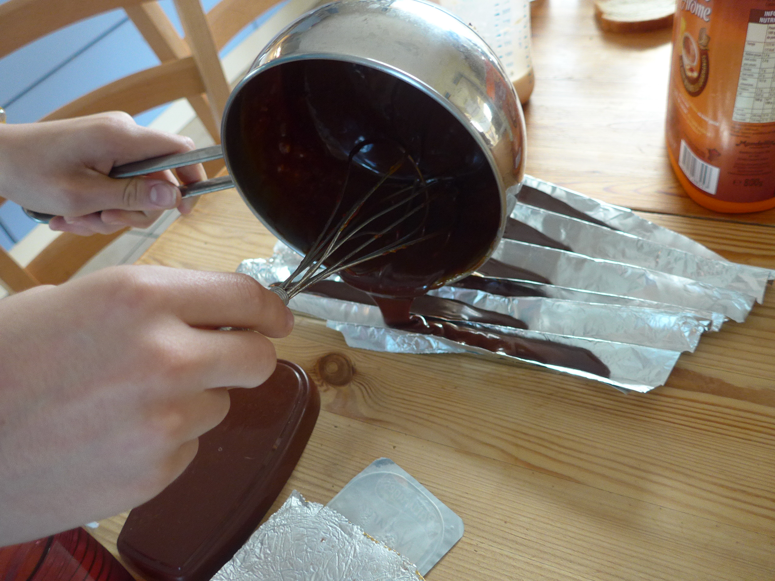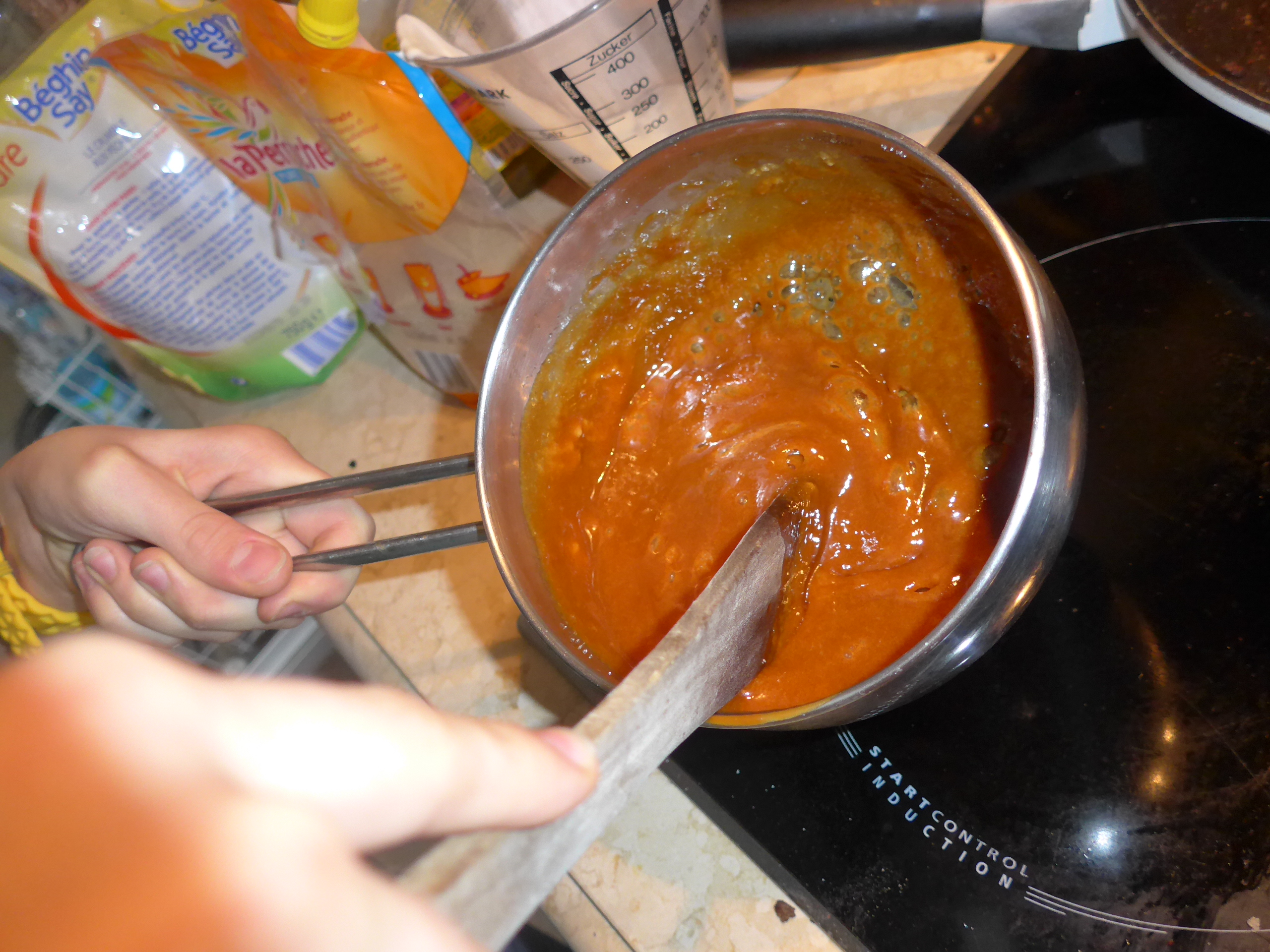 Là par exemple, Baptiste s’amusait à faire du caramel et il a essayé de rajouter du beurre pour qu’ils restent mous.P1020887