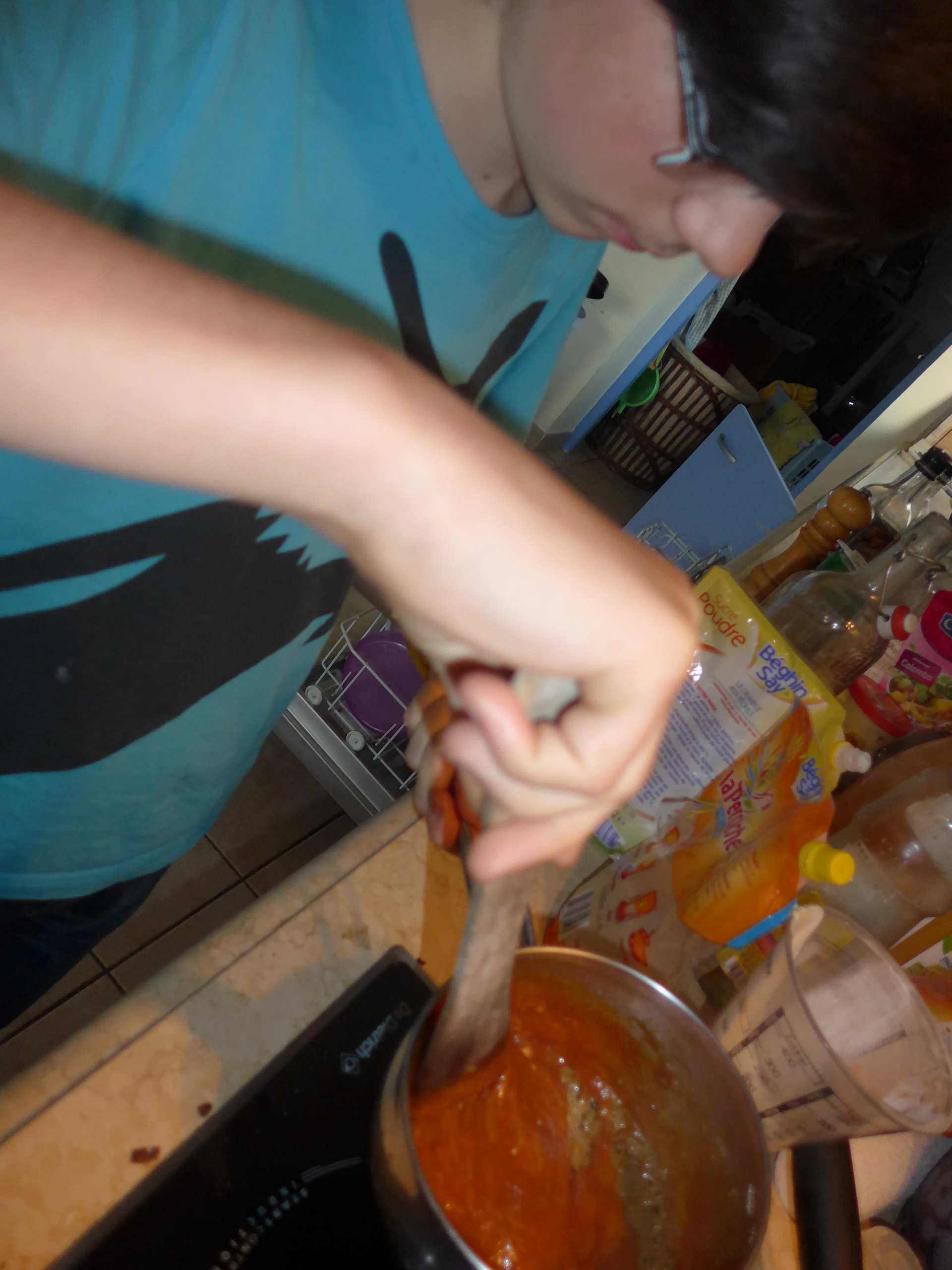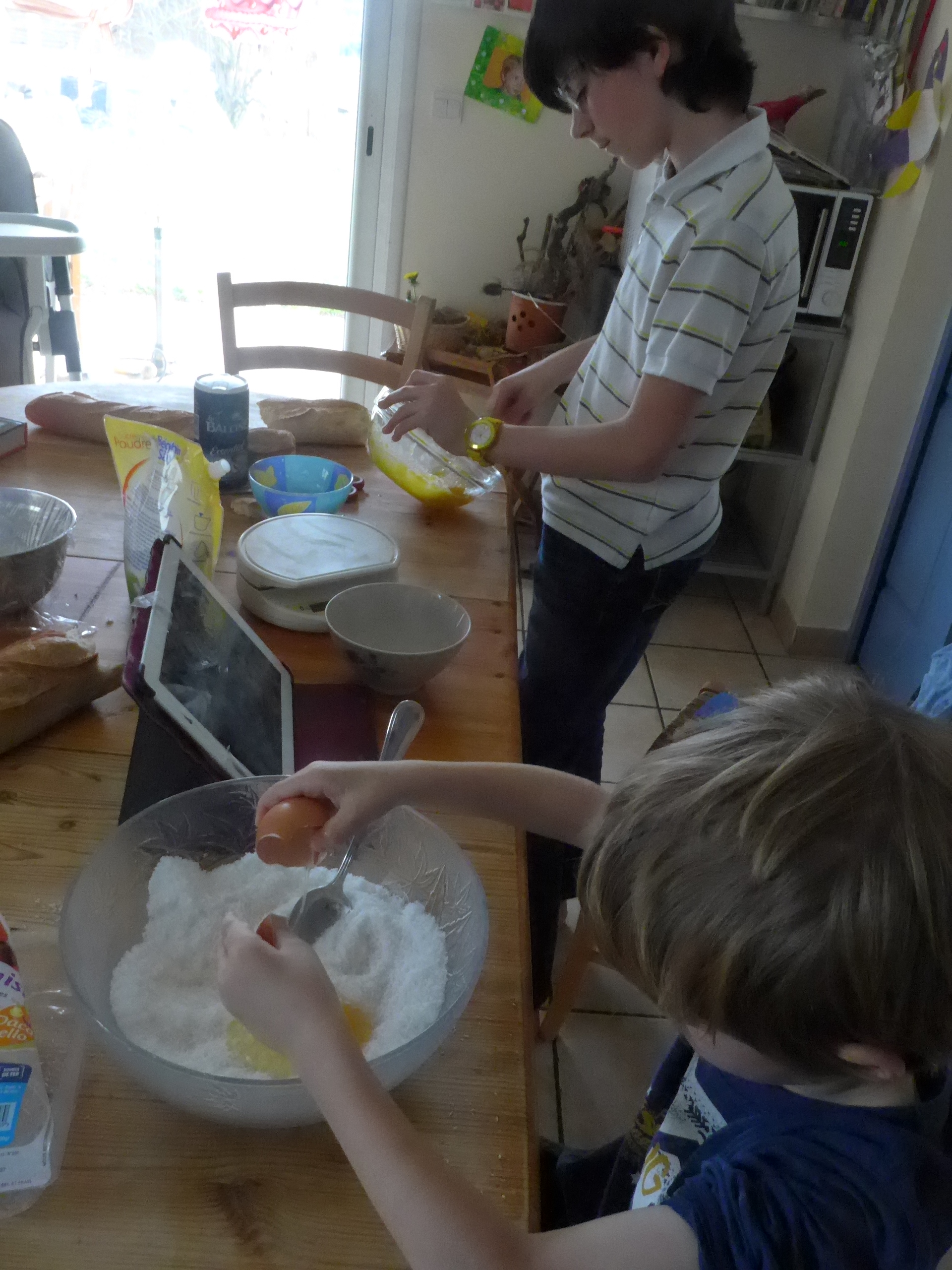 Quand il me demande de faire la cuisine, je vois  Baptiste tenter des choses, bidouiller, tâtonner, réaliser des mélanges parfois hasardeux. Parfois c’est vraiment très bon … parfois un peu moins! En fait, il est tout à fait dans « le tâtonnement expérimental », une notion que l’on retrouve dans plusieurs pédagogies actives, notamment chez Freinet mais aussi à Reggio ou chez Decroly (tiens, je ne vous en ai pas encore parlé de celui-là ! C’était un médecin belge qui comme Maria Montessori s’est intéressé aux enfants avec un handicap avant d’étendre sa pédagogie à tous les enfants) . C’est à travers ses essais, ses erreurs dans un projet qu’il a décidé et en se confrontant à la réalité qu’ il progresse et apprend de lui même de nouvelles techniques ! Il regarde aussi de temps en temps des sites de cuisine, et ses lectures « nourrissent », si je puis dire, ce qu’il a pu tester ! Et bien sûr ce mode de fonctionnement n’est pas réservé à la cuisine mais peut s’étendre à tous les apprentissages ! Parenthèse théorique refermée, je retourne aux recettes de Baptiste !