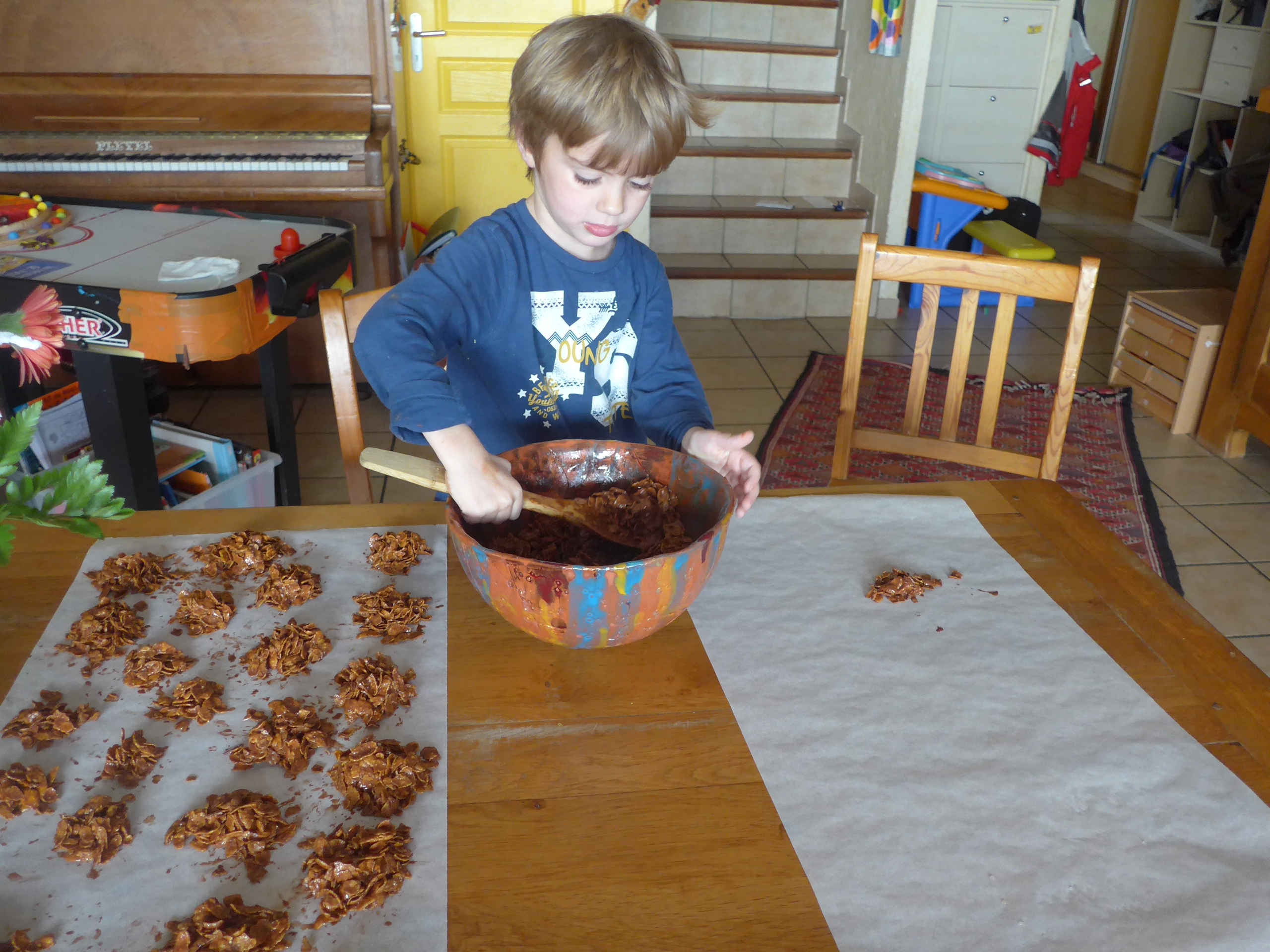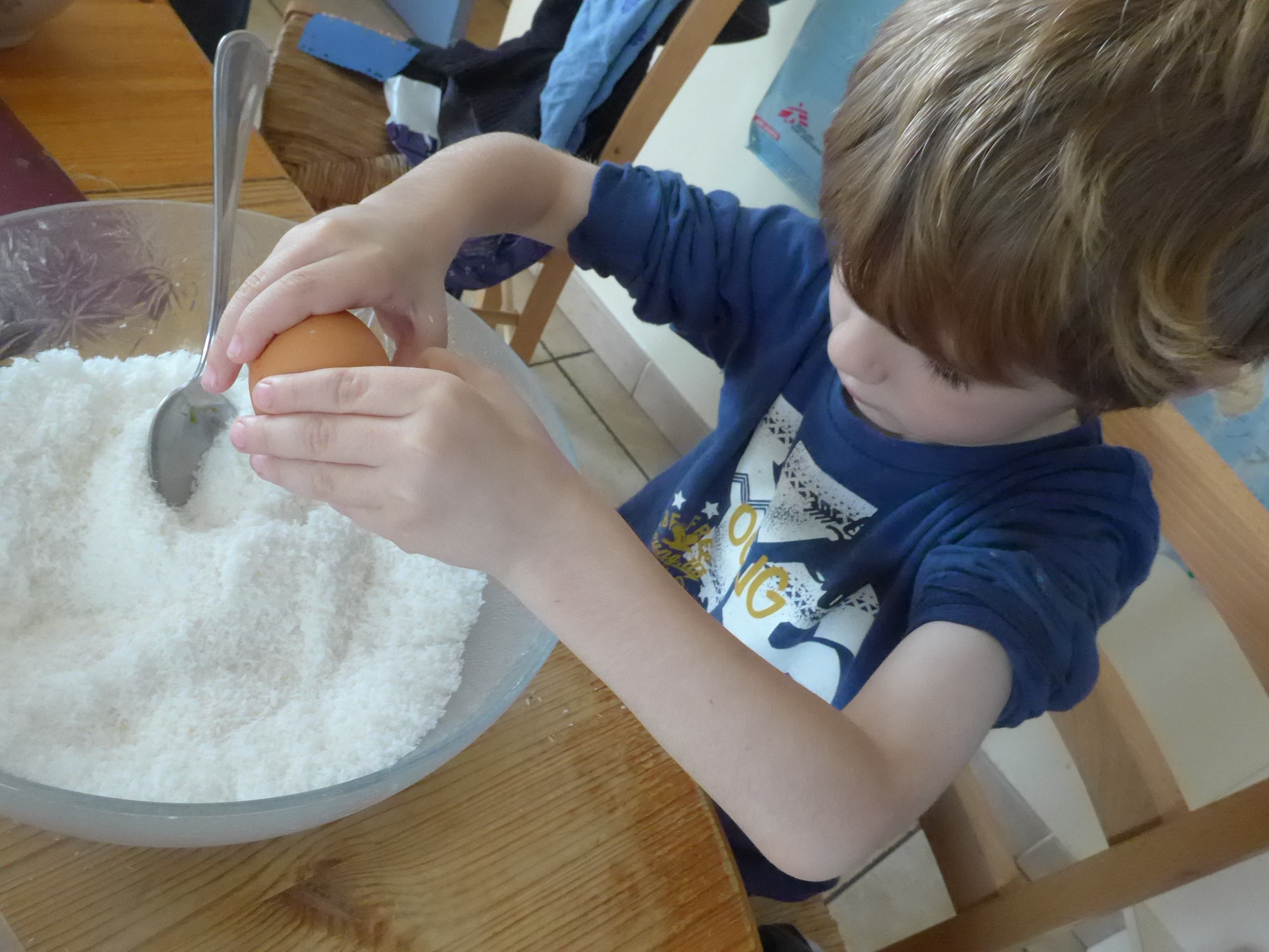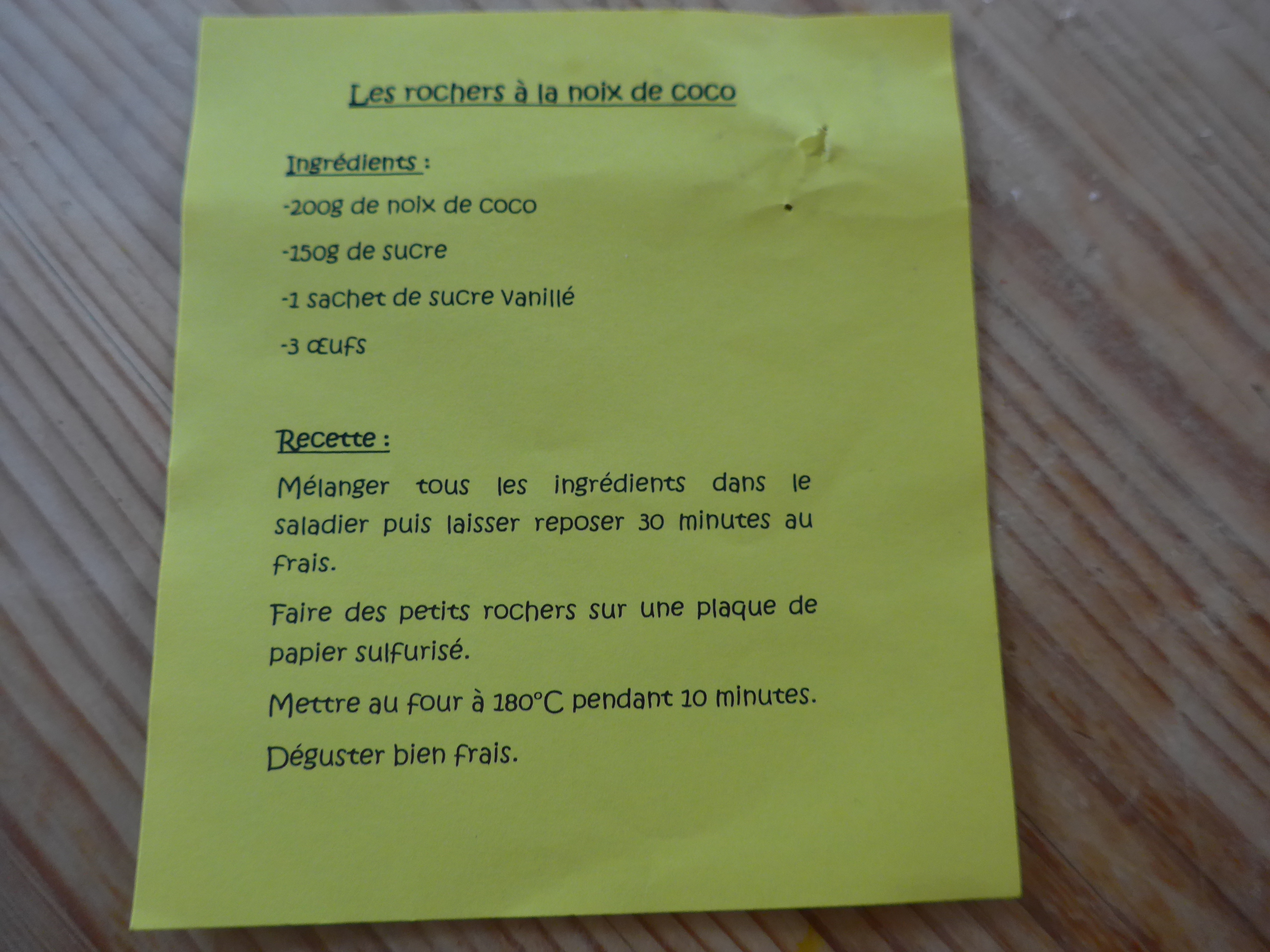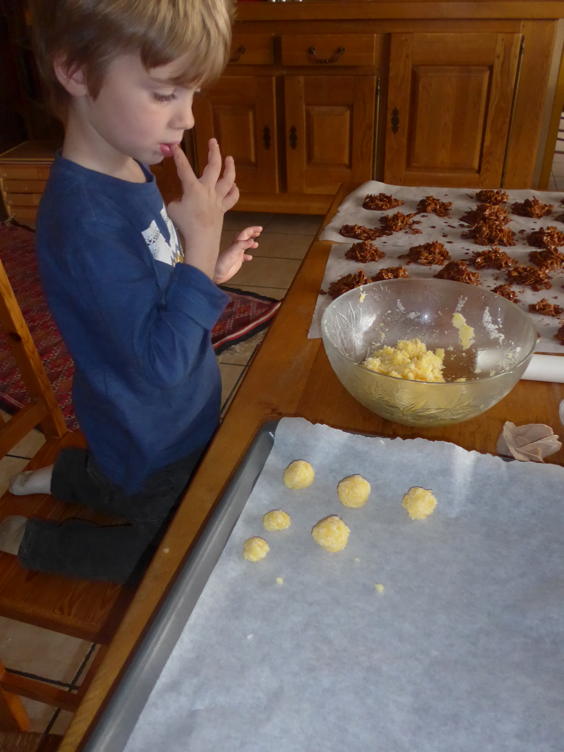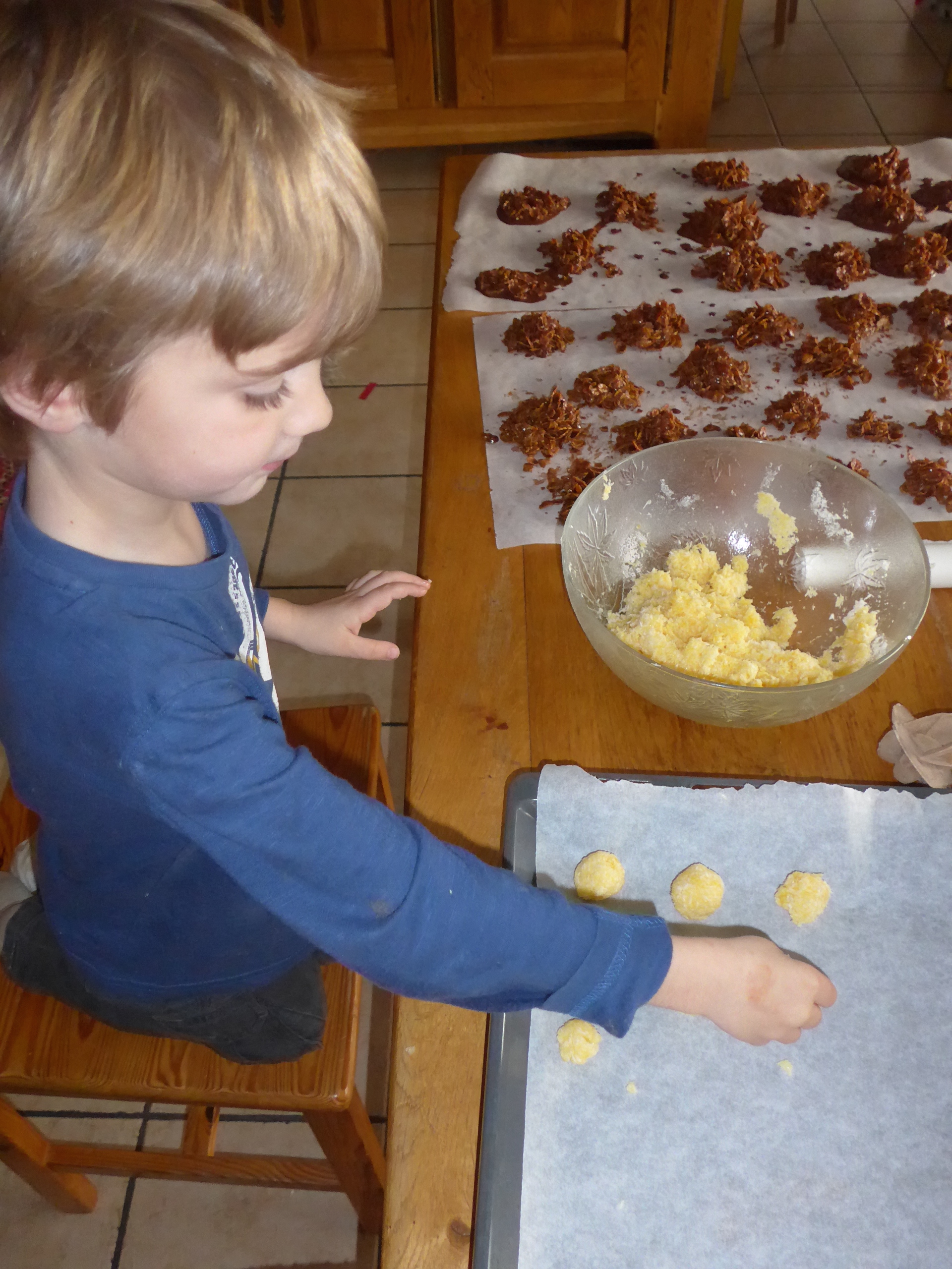 Noé lui refaisait des recettes apprises à l’école : des rochers à la noix de coco :