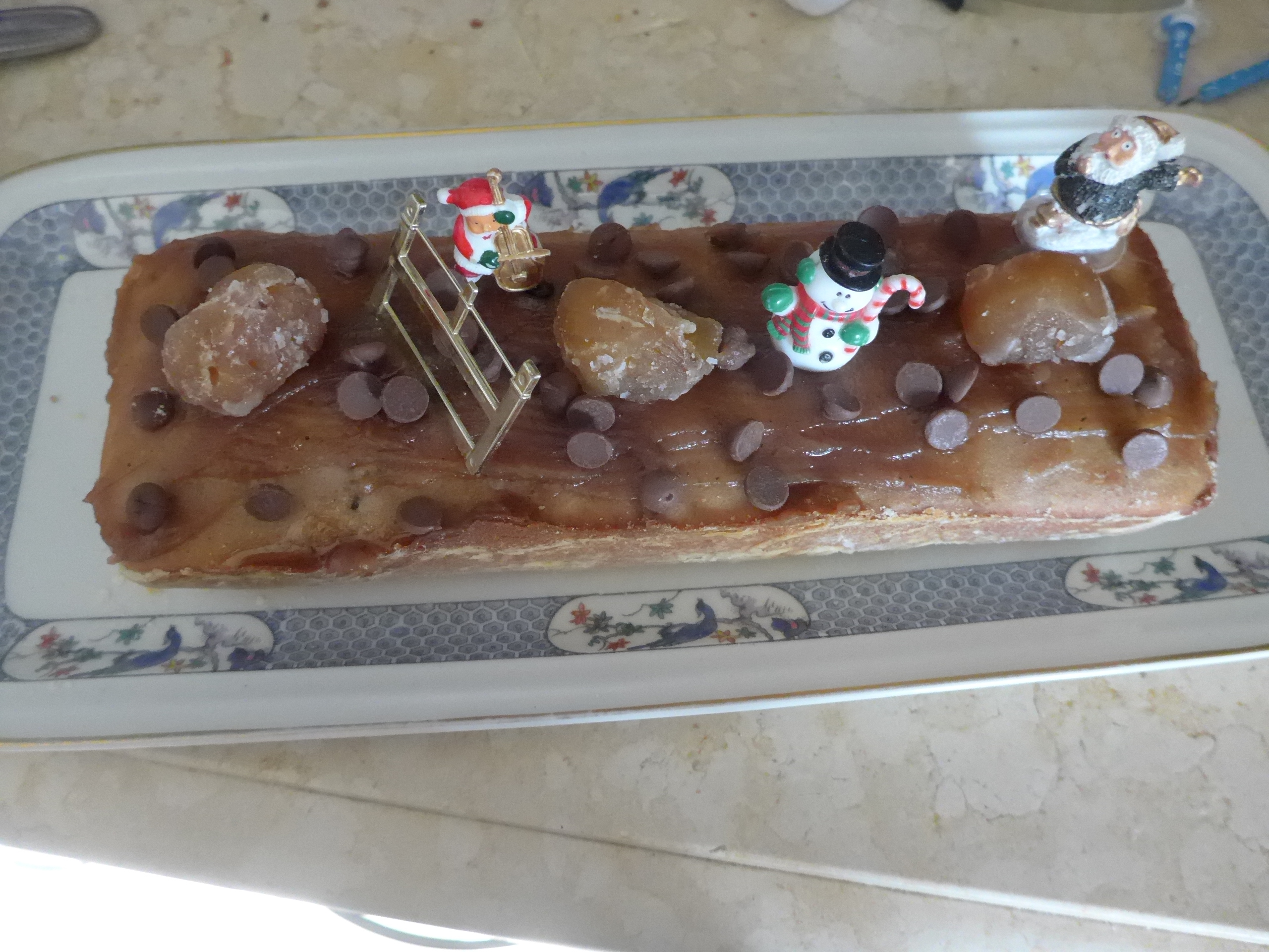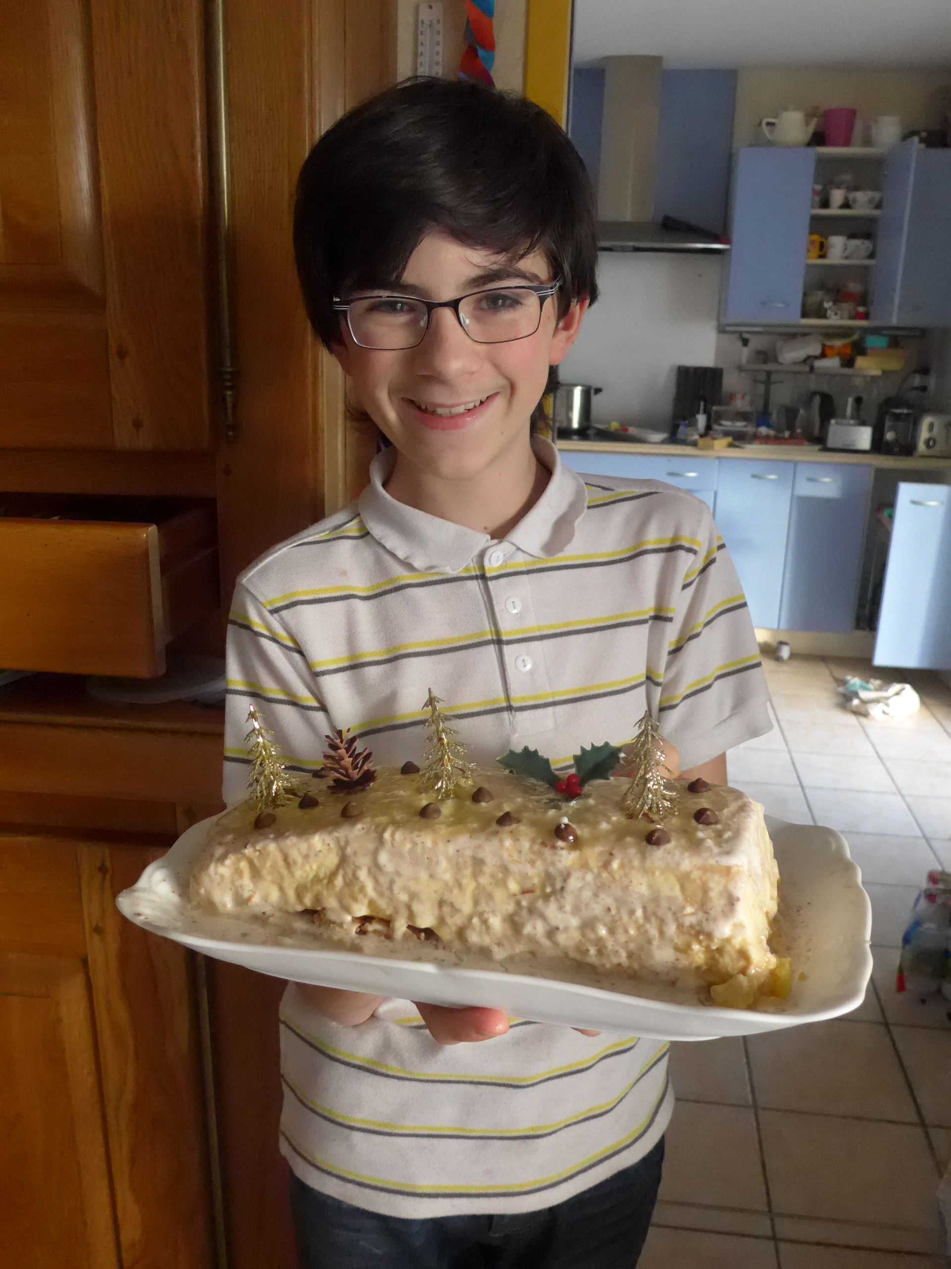P1030071Pendant que Baptiste faisait la bûche dont je vous ai parlé plus haut, Rémi faisait lui aussi une bûche à la crème de marron :