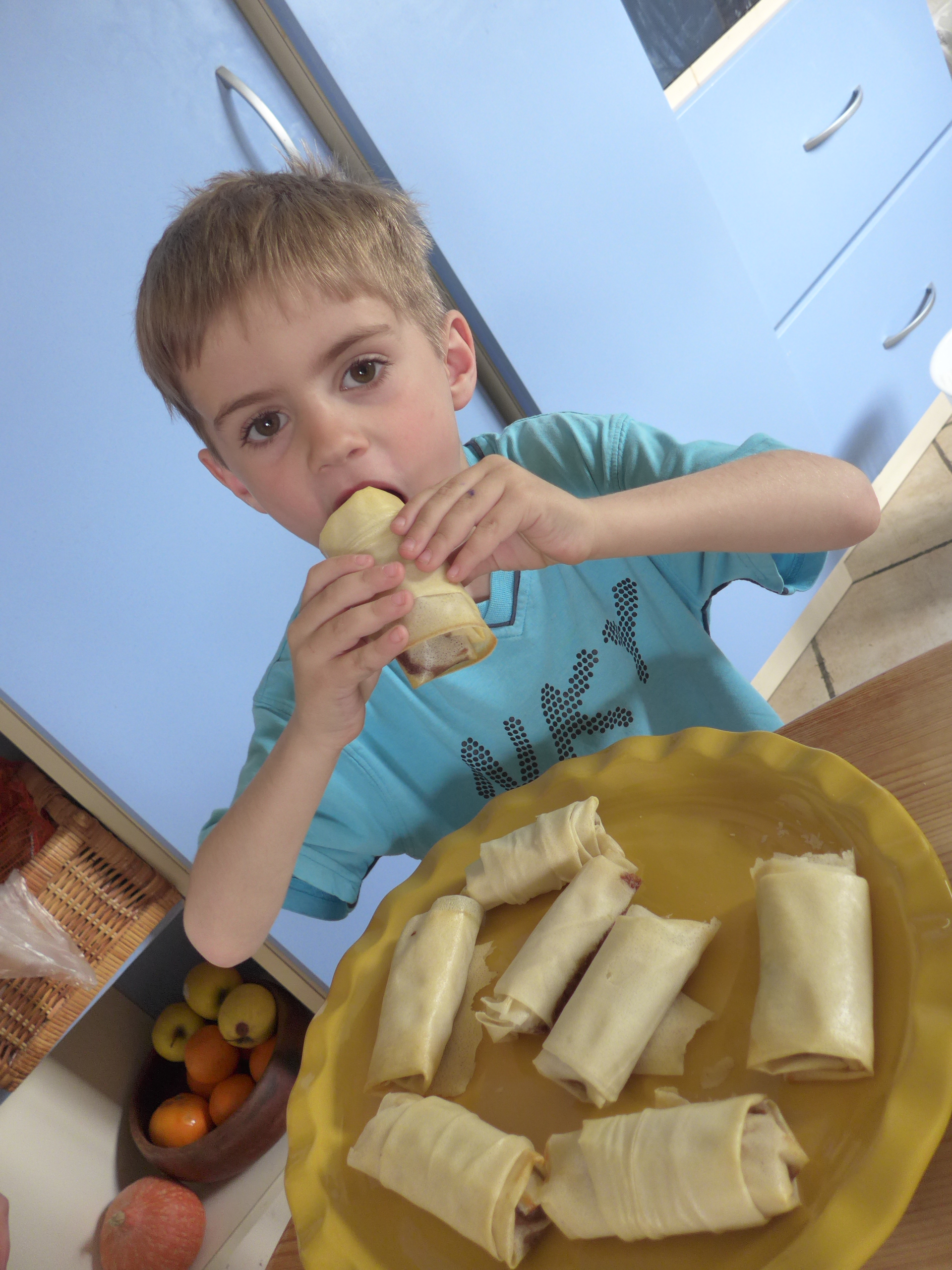 Et puis plein d’autres recettes, inventées ou trouvées, que je n’ai pas prises en photo ! Dernièrement, il nous a fait un bon risotto au chorizo, différent de la recette de son frère Rémi (qui était d’ailleurs une recette Astrapi) mais très bon aussi !