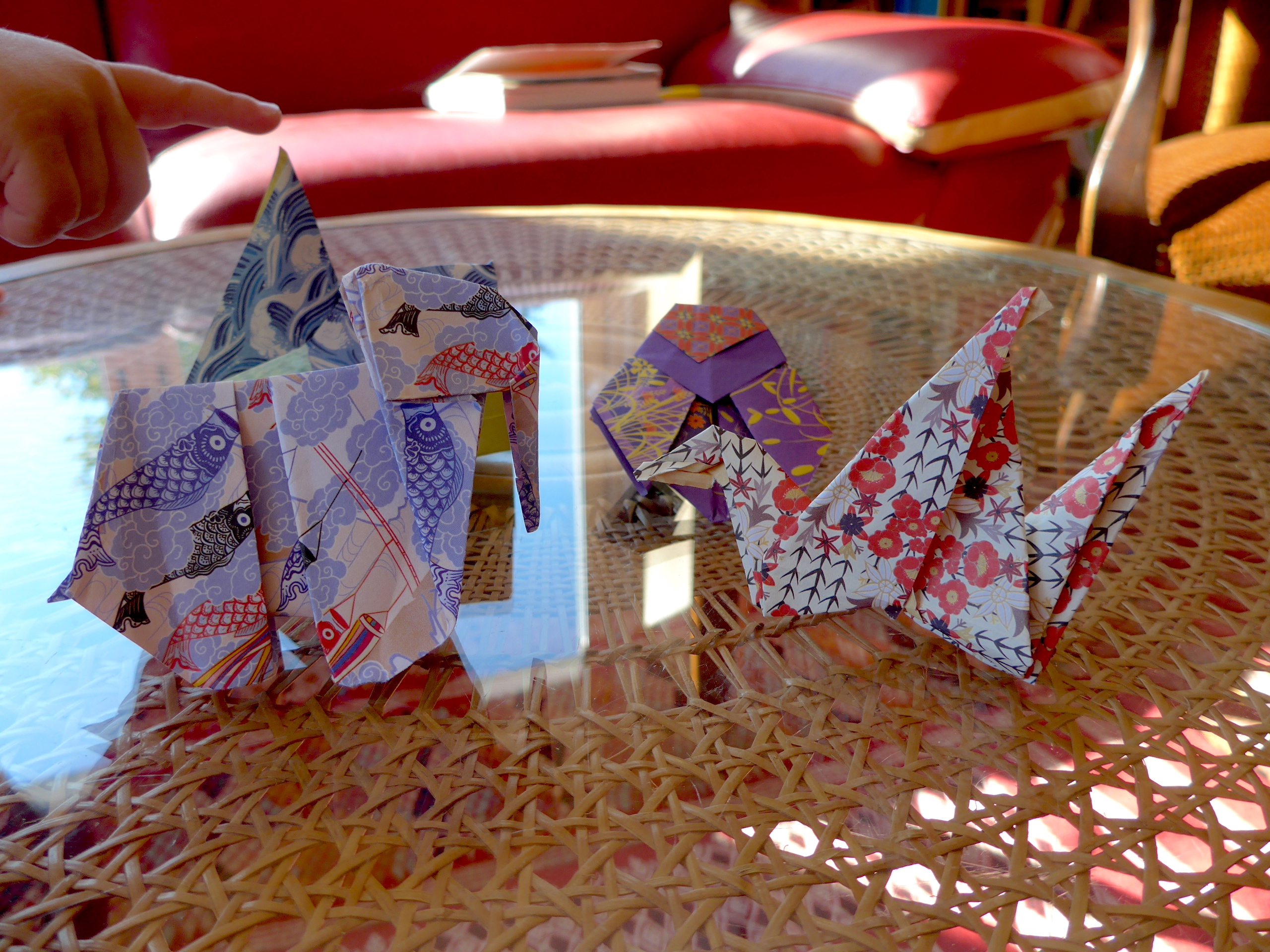 Et puis petit à petit, il a continué à installé sa table tout seul ! Il m’a demandé d’accrocher les coquelicots qu’il avait faits à l’école (un fond je pense en peinture ou encre gel, des coquelicots en papier crépon avec un coeur en bouton, une tige en carton).