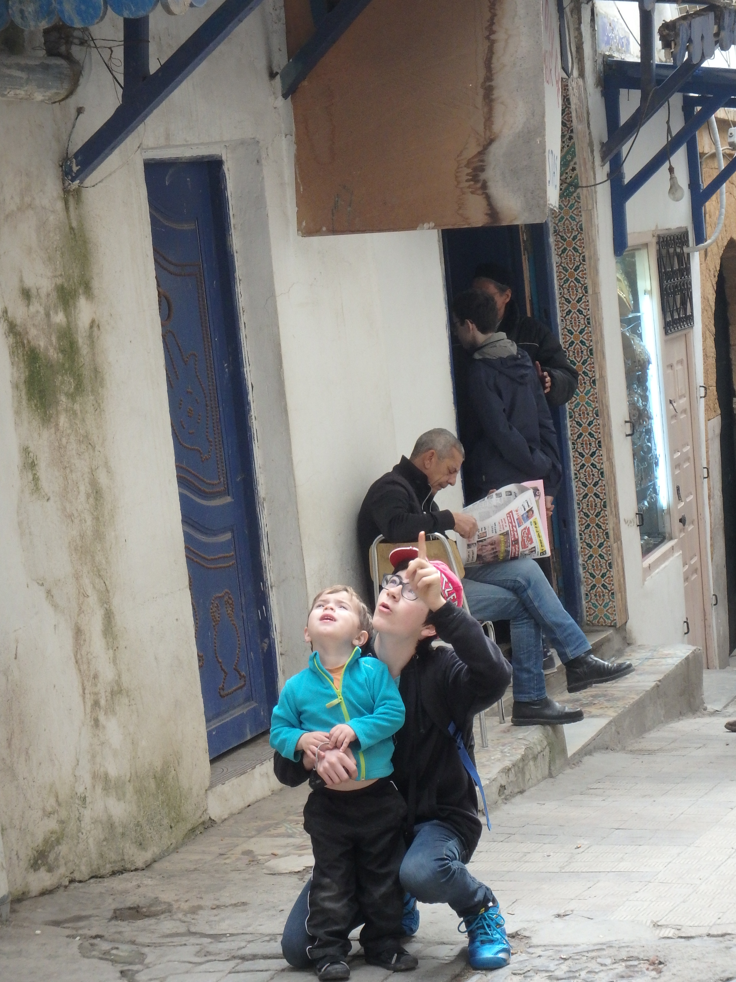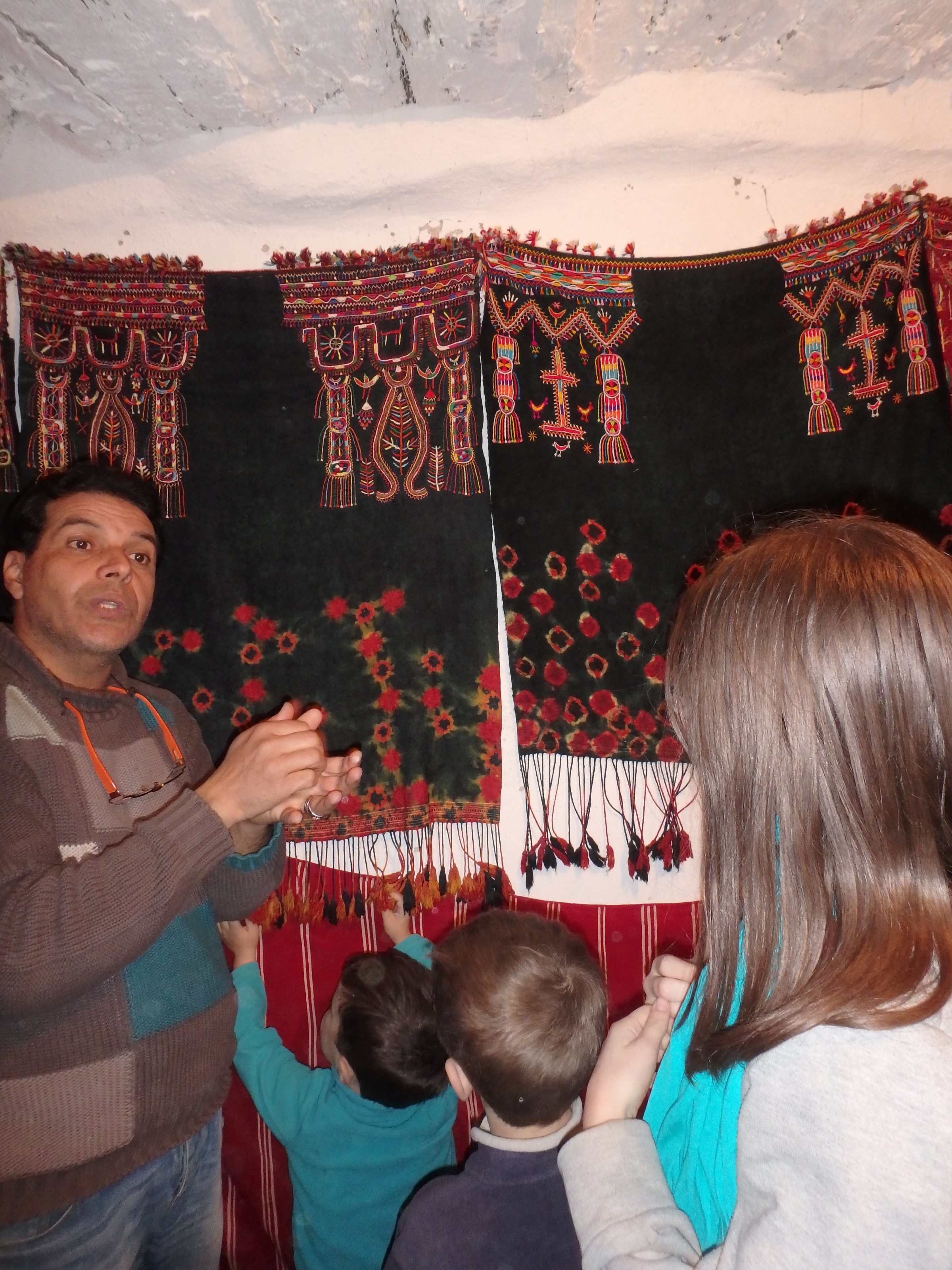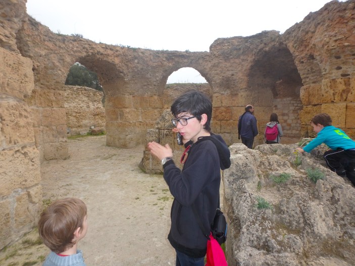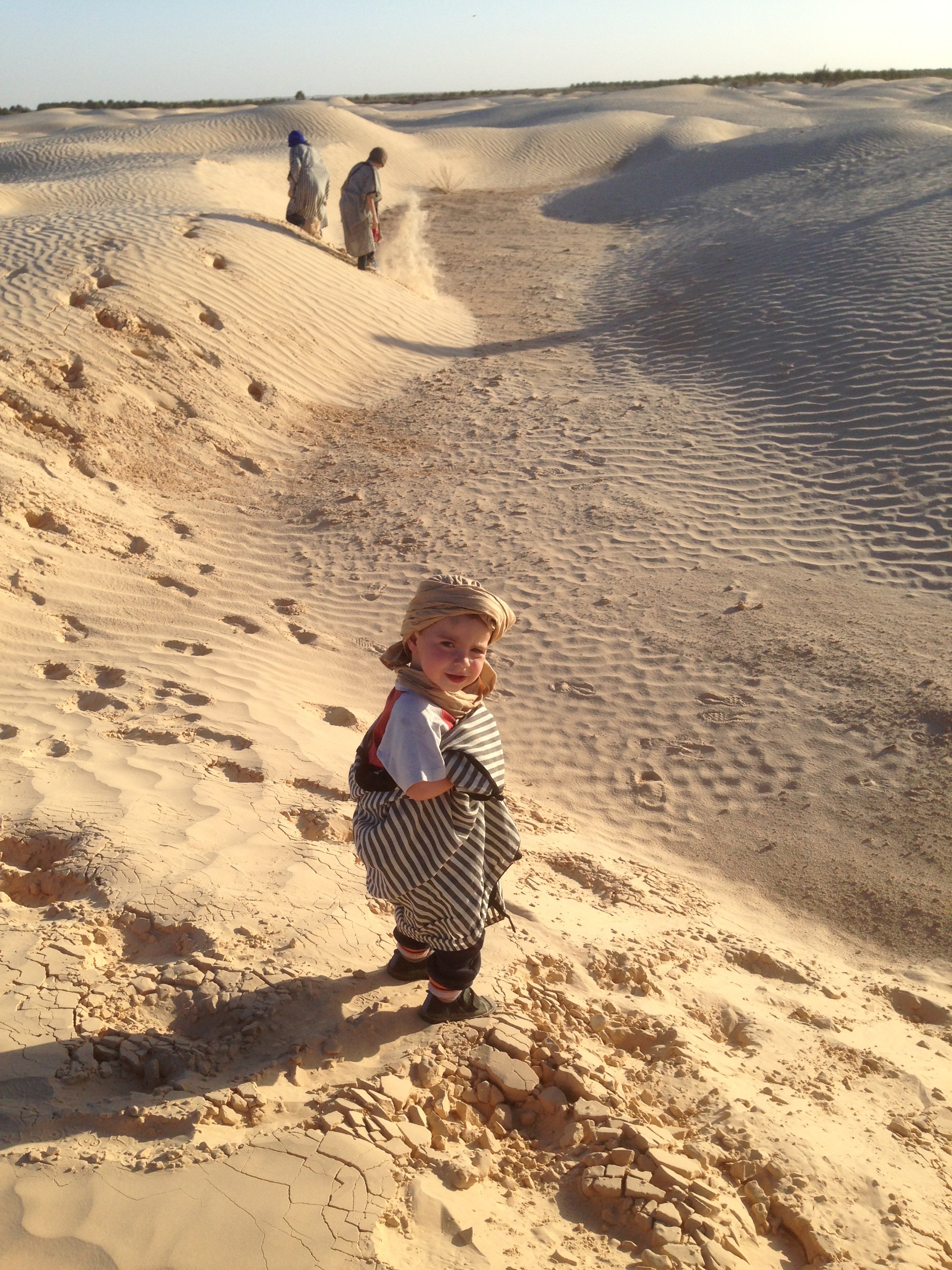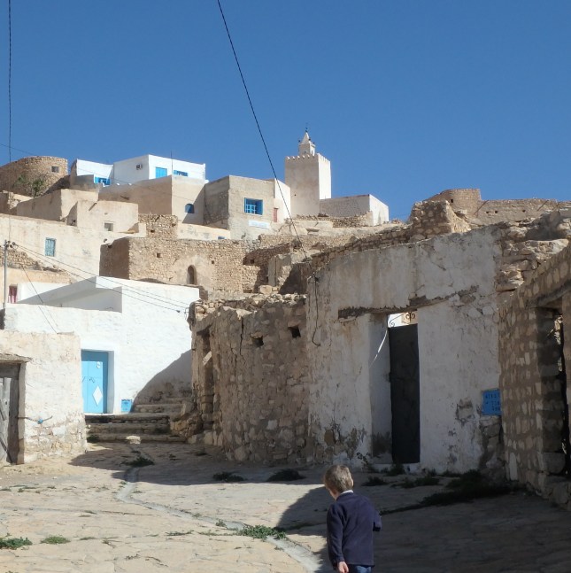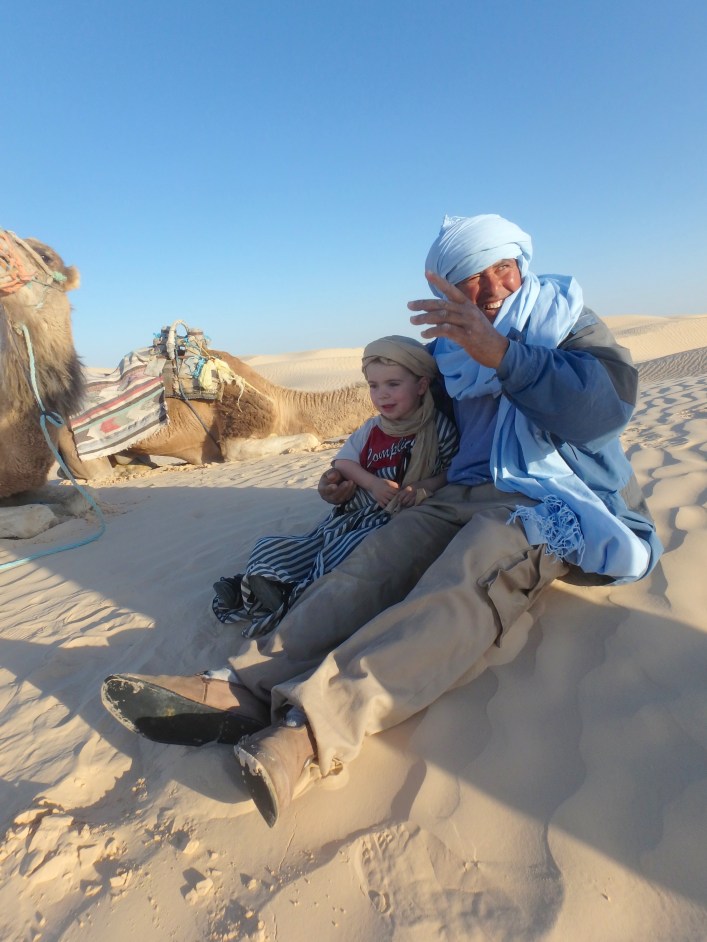 On fait des rencontres ! Pas facile de communiquer ! Par contre les plus grands parlent très bien français ! Les berbères connaissent beaucoup de langues : le berbère est leur langue maternelle, ils parlent arabe et français dès l’école et l’anglais au collège ! On a été étonné de voir l’amour des tunisiens pour les enfants, mais de jeunes adolescents s’arrêtaient pour sourire aux petits, leur passer la main dans les cheveux !