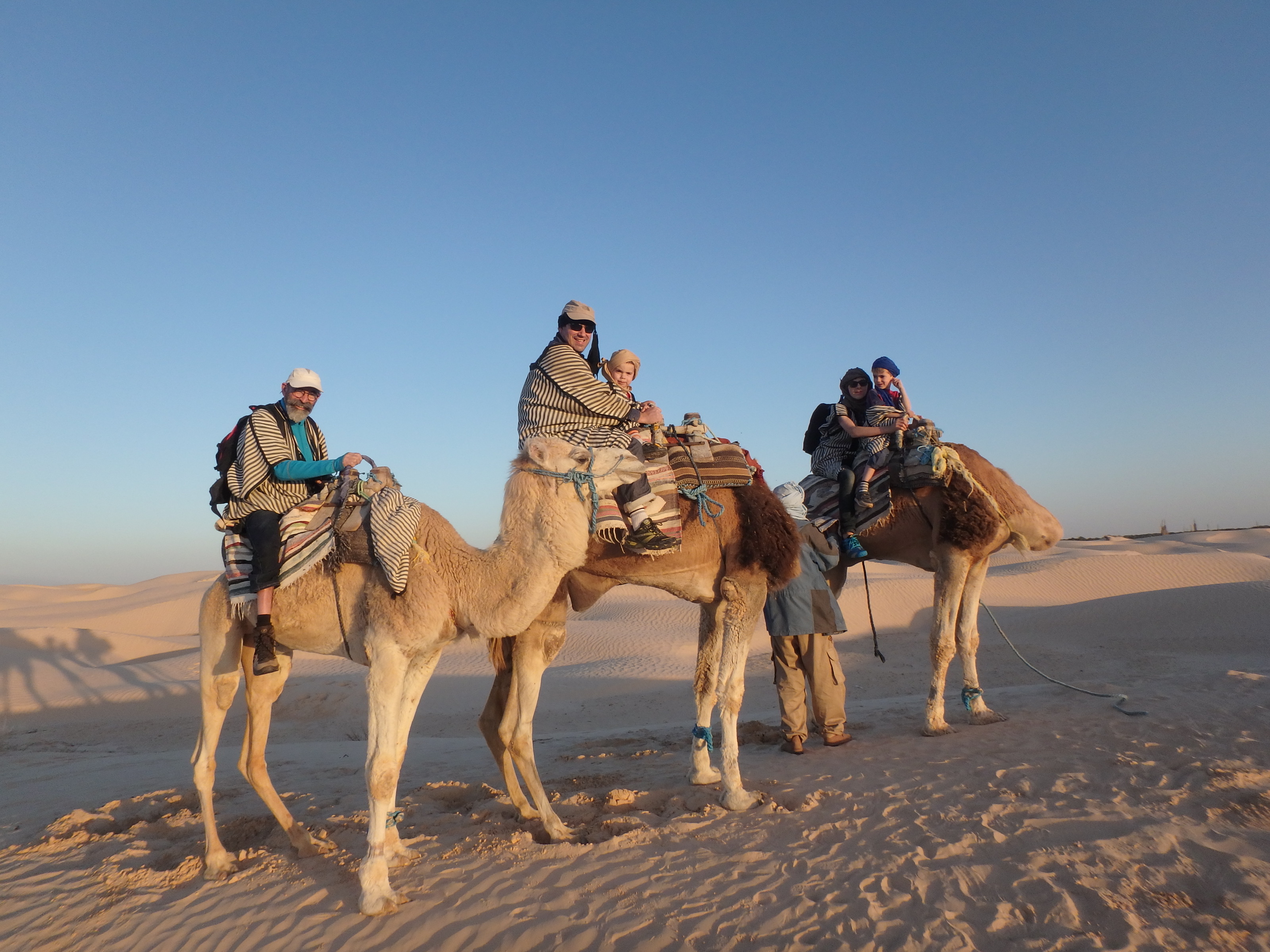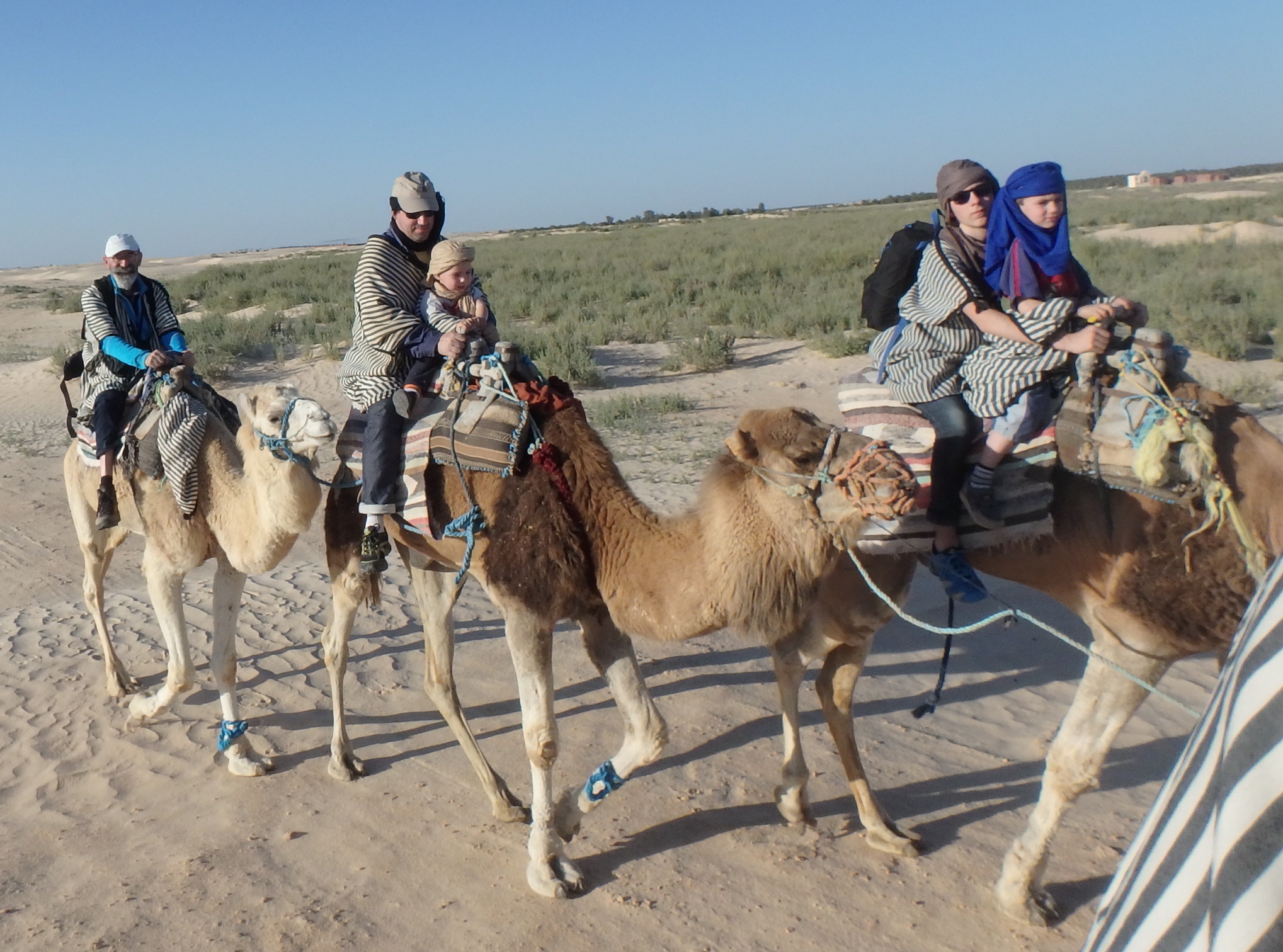 Et derrière, Lison, Rémi et moi chacun sur son dromadaire.