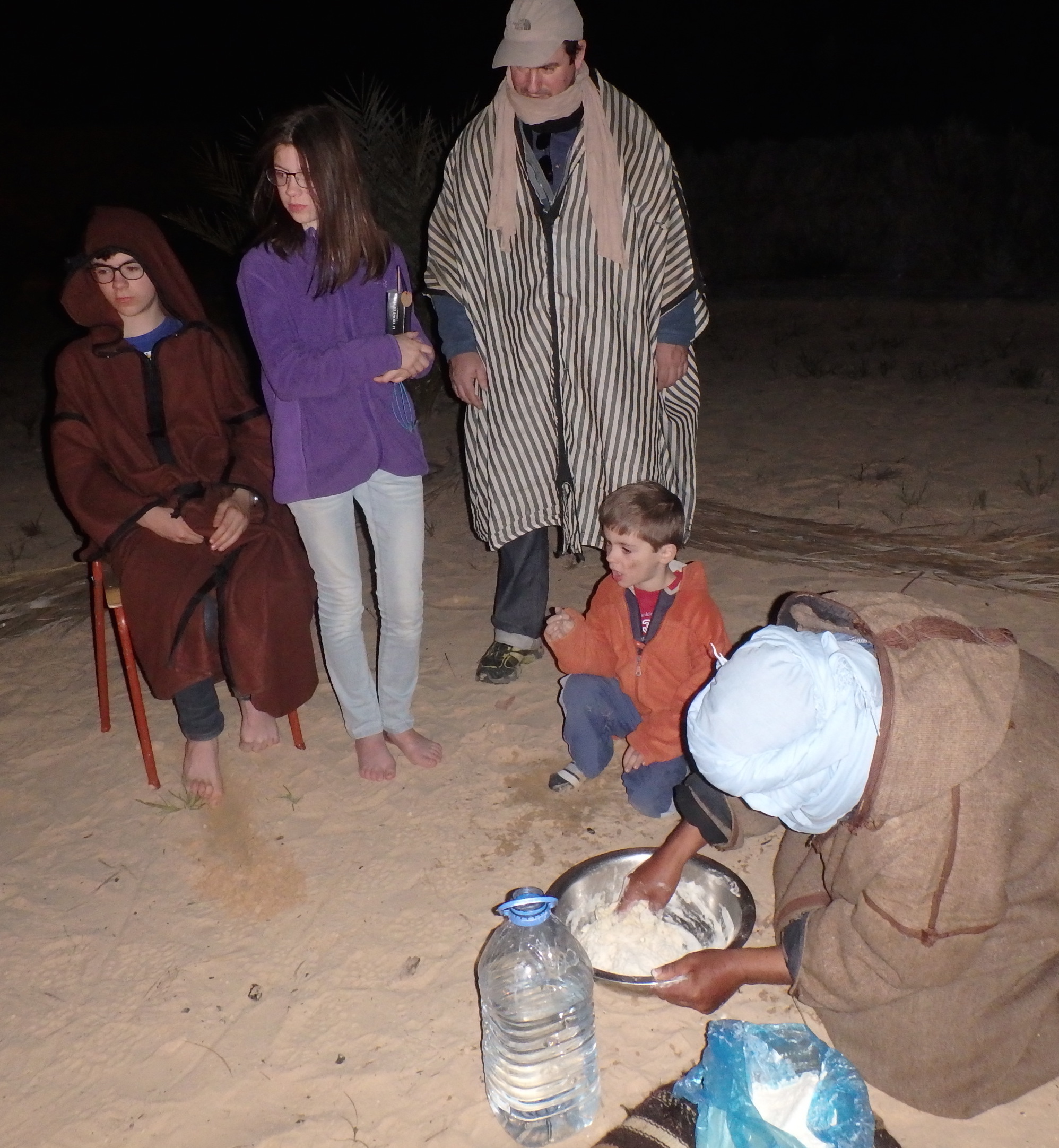 Et on observe notre guide faire un pain du désert :