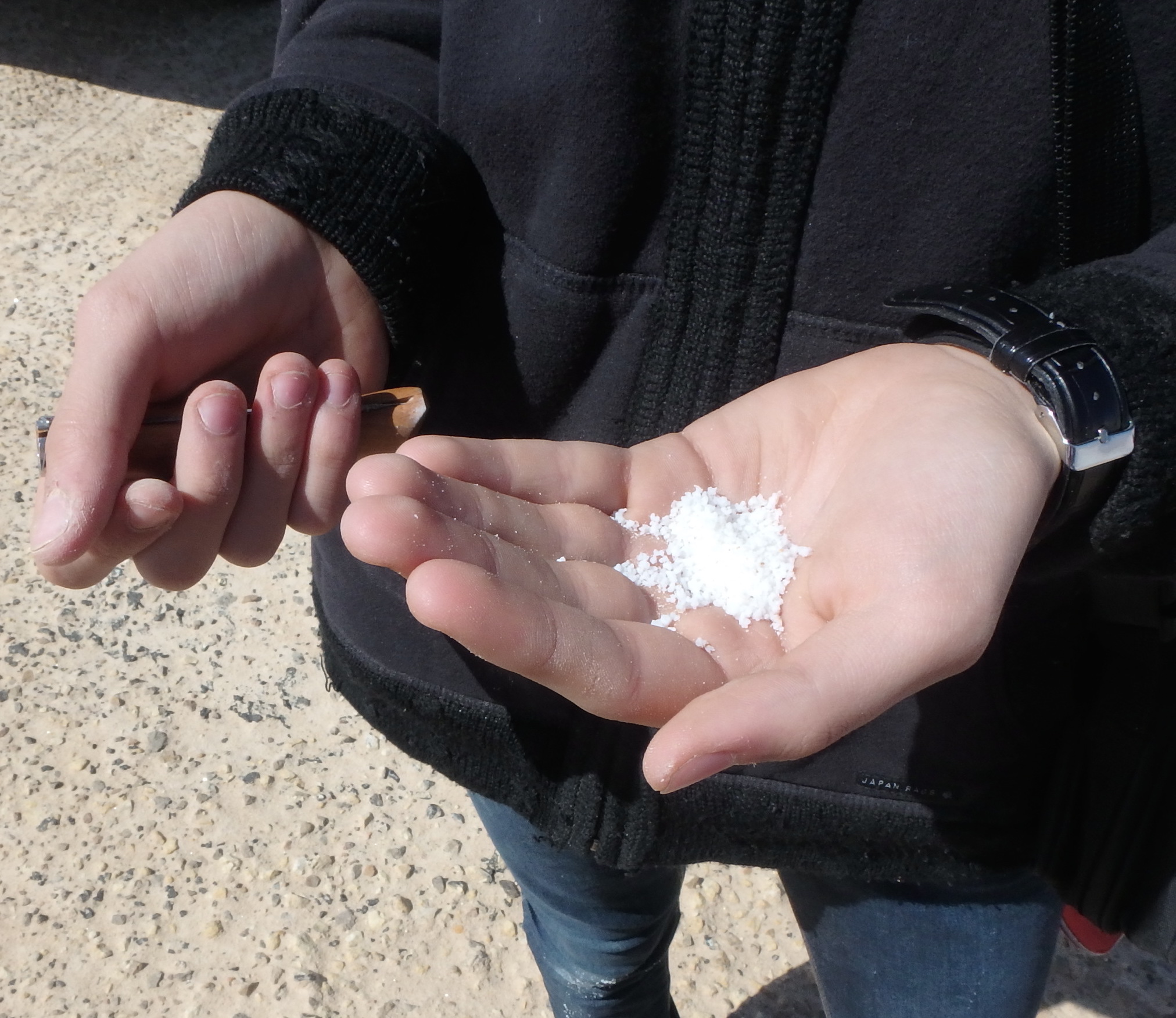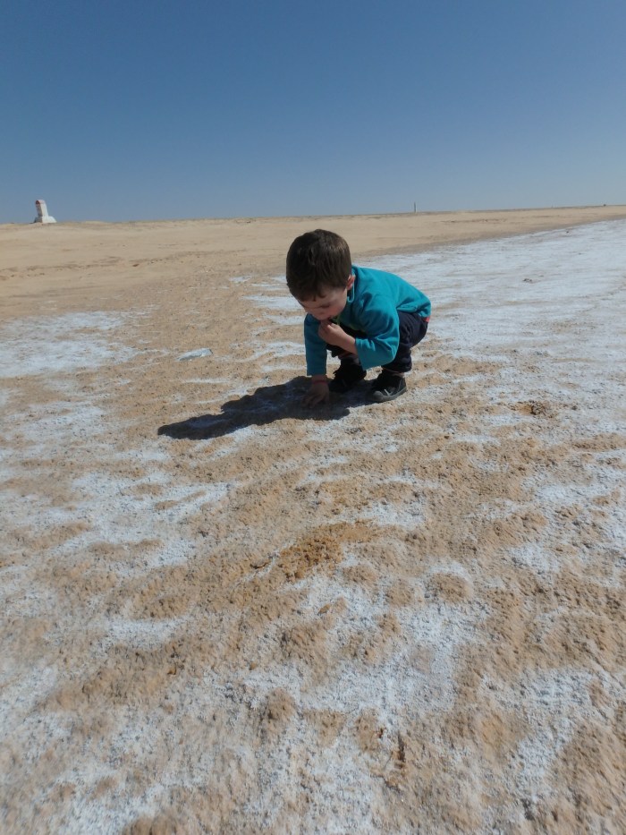 Je vous ai déjà parlé du pain du désert qu’on a dégusté, du sel goûté sur le lac asséché !