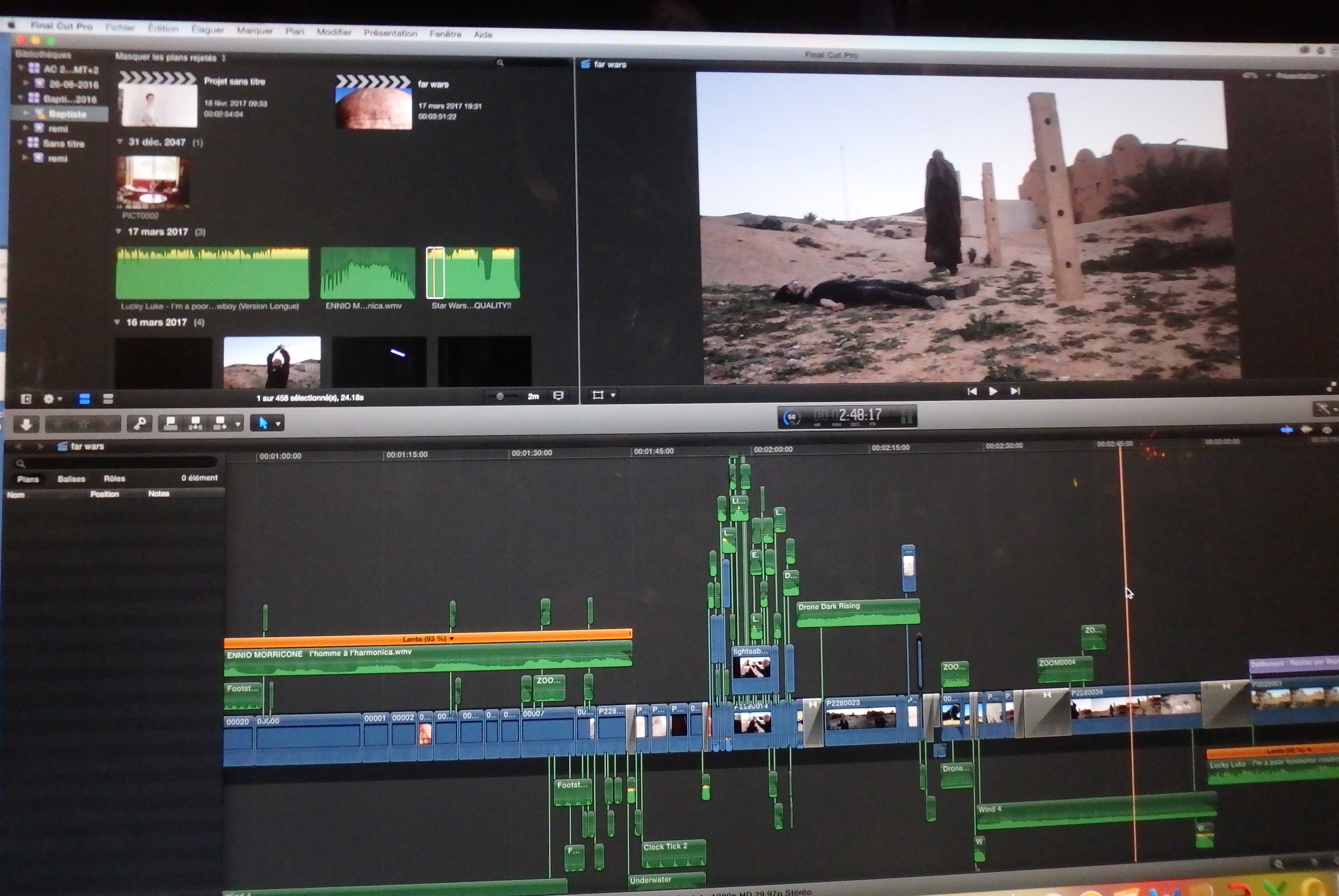 Et puis Baptiste a le projet de tourner un mini film dans les magnifiques décors naturels de la Tunisie ! Là, il est en repérage à Chenini ! Ils se lèveront tôt un matin pour tourner leur film mais … malheur … catastrophe … La carte de l’appareil était abimée … Rien n’a été enregistré … Après un petit coup de déprime, c’est reparti, ils retournent les plans le soir dans un autre décor, celui de Matmata !