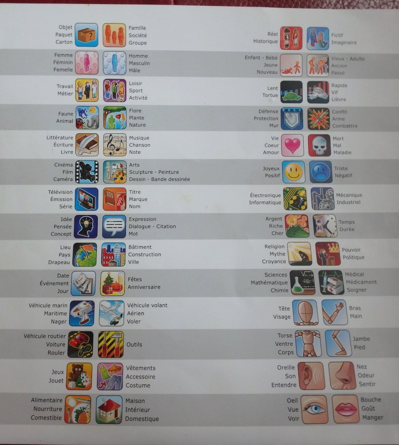 Le but du jeu : faire deviner un mot, expression, titre ou autre se trouvant sur la carte, les bleues étant les plus faciles, les rouges les moyennes et les noires les difficiles. Cette fois-ci, on a joué comme ça, sans compter les points, donc on s’est contenté de choisir la proposition qui nous paraissait la plus rigolote à faire deviner !