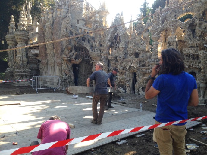 Mais si nous y sommes allés plus particulièrement cette fois-ci, c’est parce qu’un tournage a lieu actuellement sur le site : un film pour le cinéma sur la vie de notre facteur Cheval, avec notamment Jacques Gamblin et Laetitia Casta.