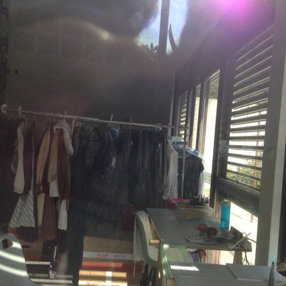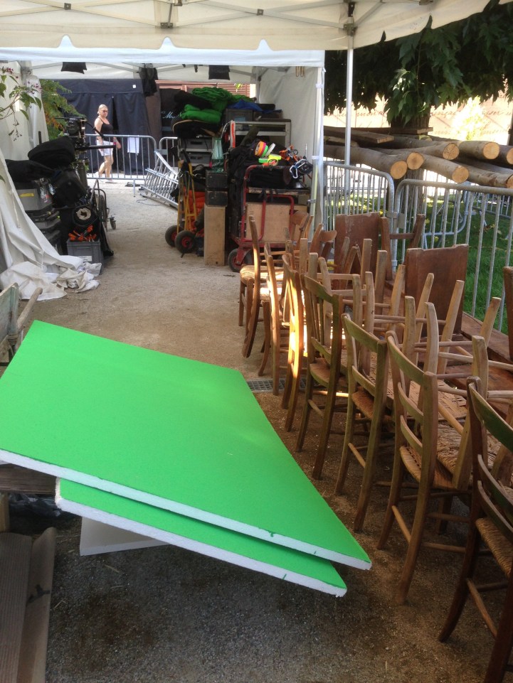 Et puis les yeux de Baptiste se mettent à briller ! Des cadres pour mettre des fonds verts géants puisque dans le film le palais est en train de se construire, il faut bien cacher certaines parties du palais qui sont censés ne pas être encore là !