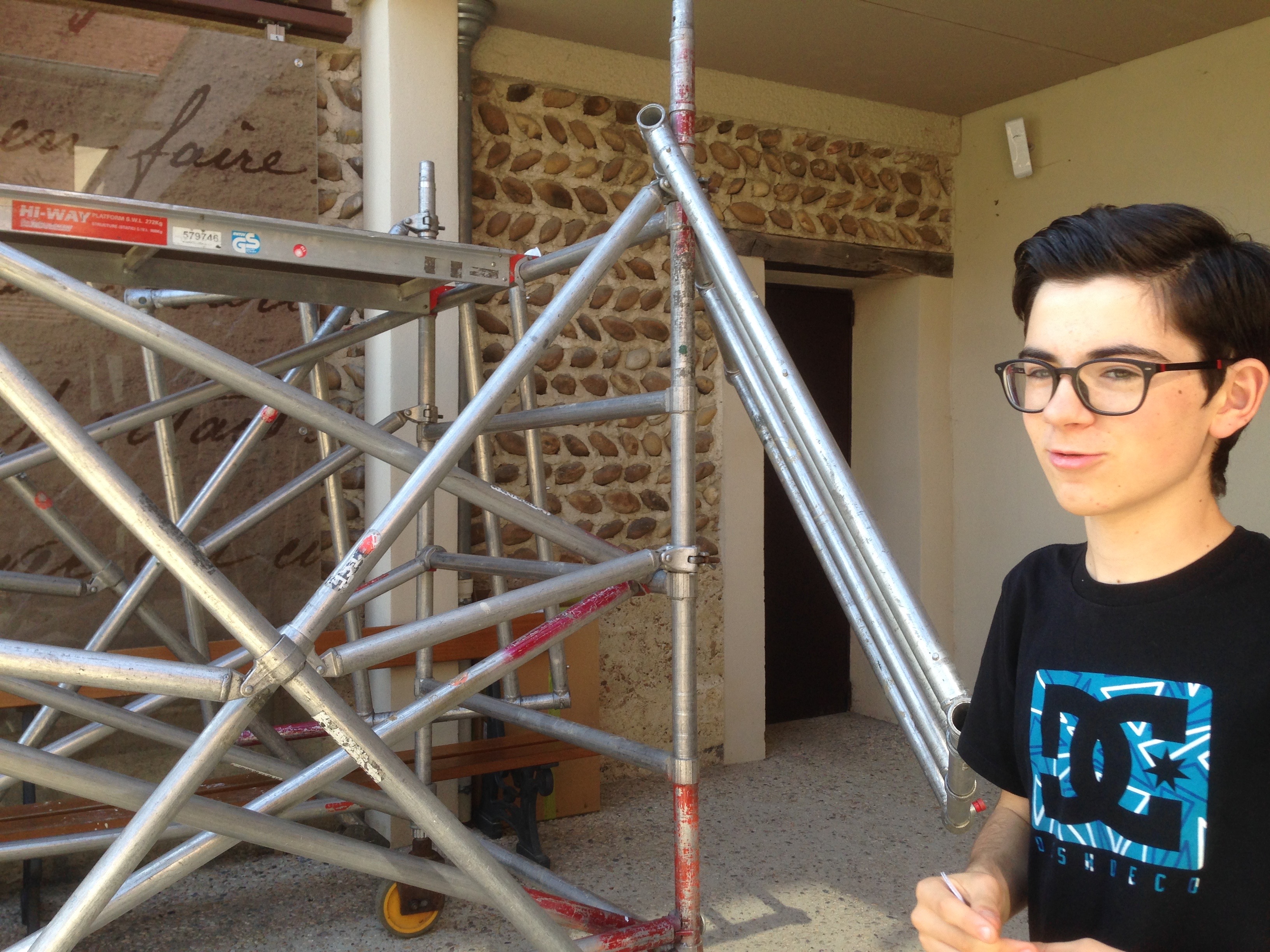 Et puis les yeux de Baptiste se mettent à briller ! Des cadres pour mettre des fonds verts géants puisque dans le film le palais est en train de se construire, il faut bien cacher certaines parties du palais qui sont censés ne pas être encore là !
