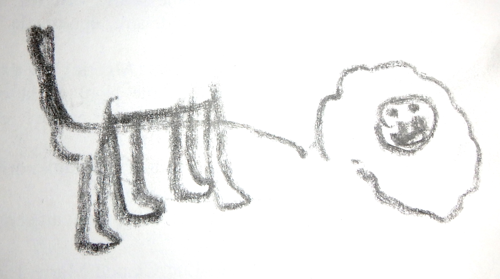 Firmin voulait faire un tunnel pour un train qui passe sous le palais idéal ! C’était compliqué pour lui qu’il fabrique réellement son bâtiment, alors je lui demandais quel morceau il voulait prendre, où il voulait le placer, je lui demandait de mettre du scotch, de dessiner les décors …