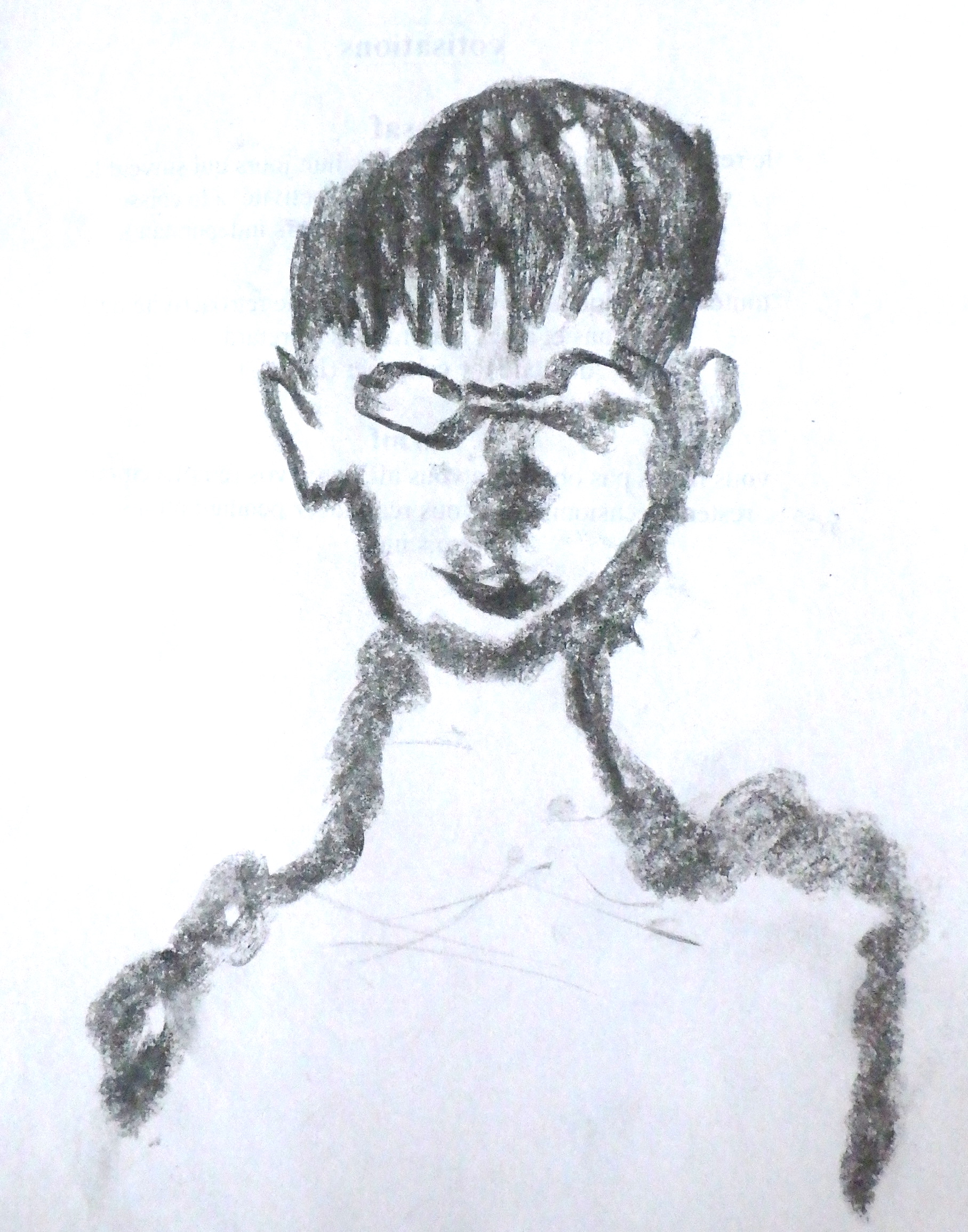 Et voici donc l’artiste, Marcel Schmitz, nous présentant son oeuvre. Ah oui, j’avais oublié de vous préciser que Marcel est une personne trisomique.