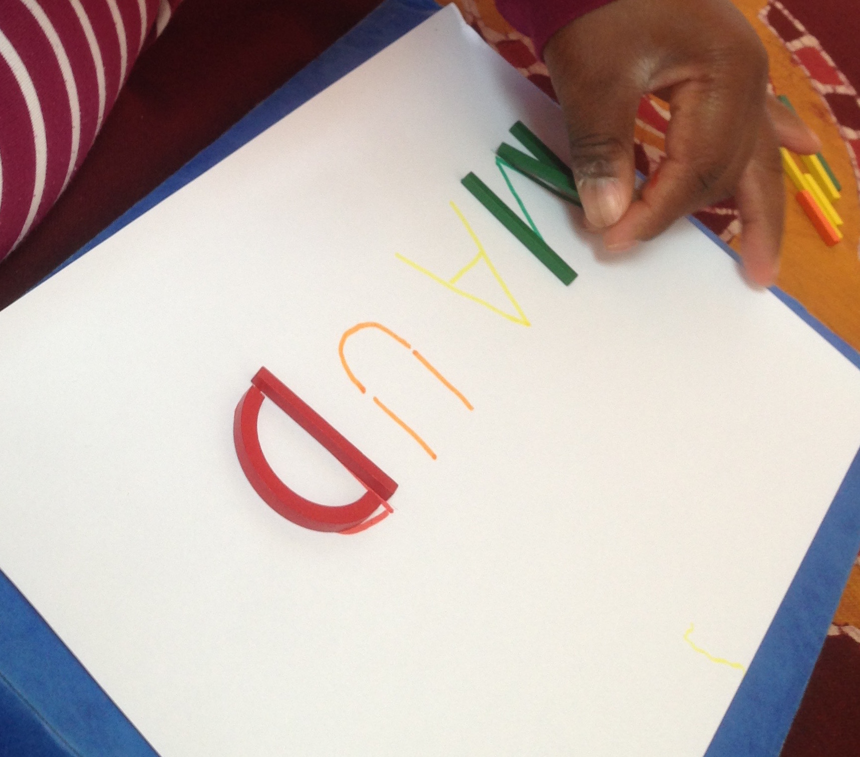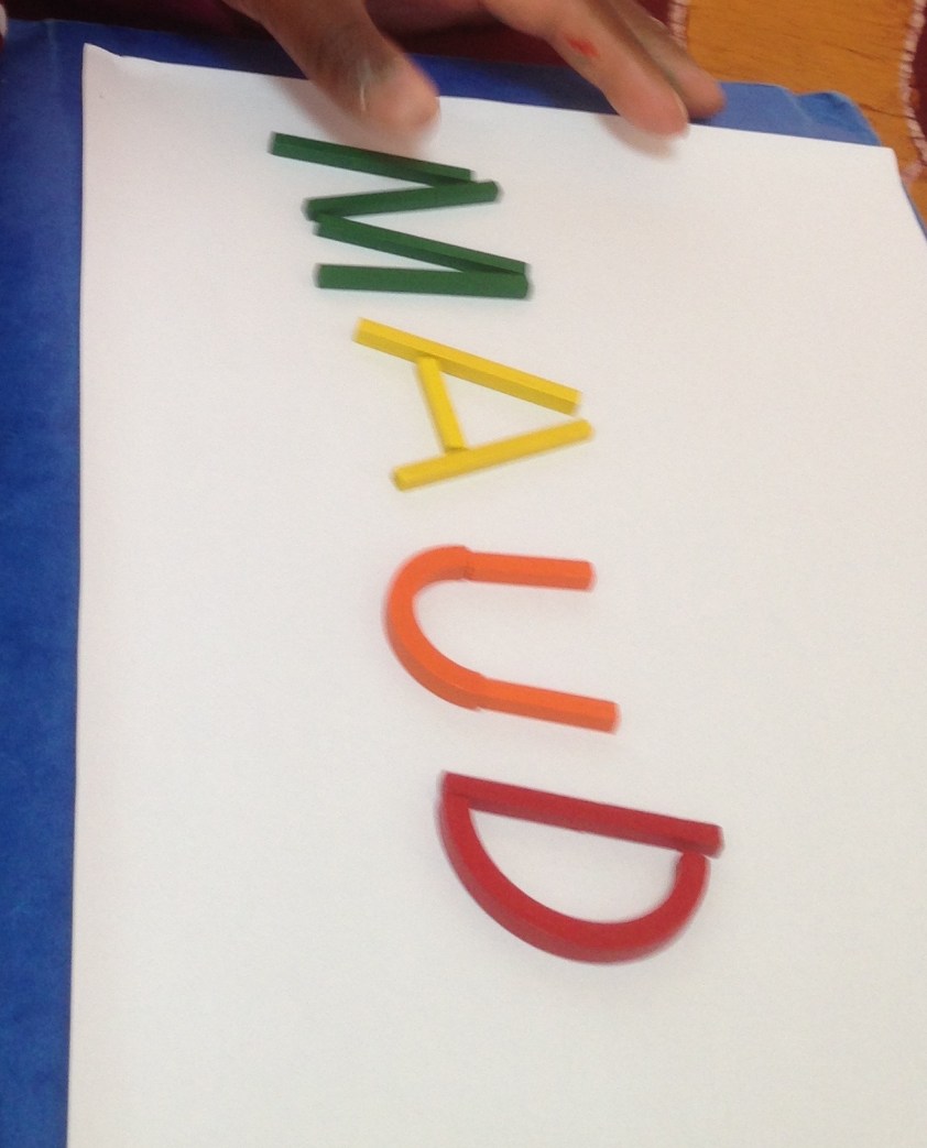 Placer des bâtonnets sur un modèle pour écrire son prénom