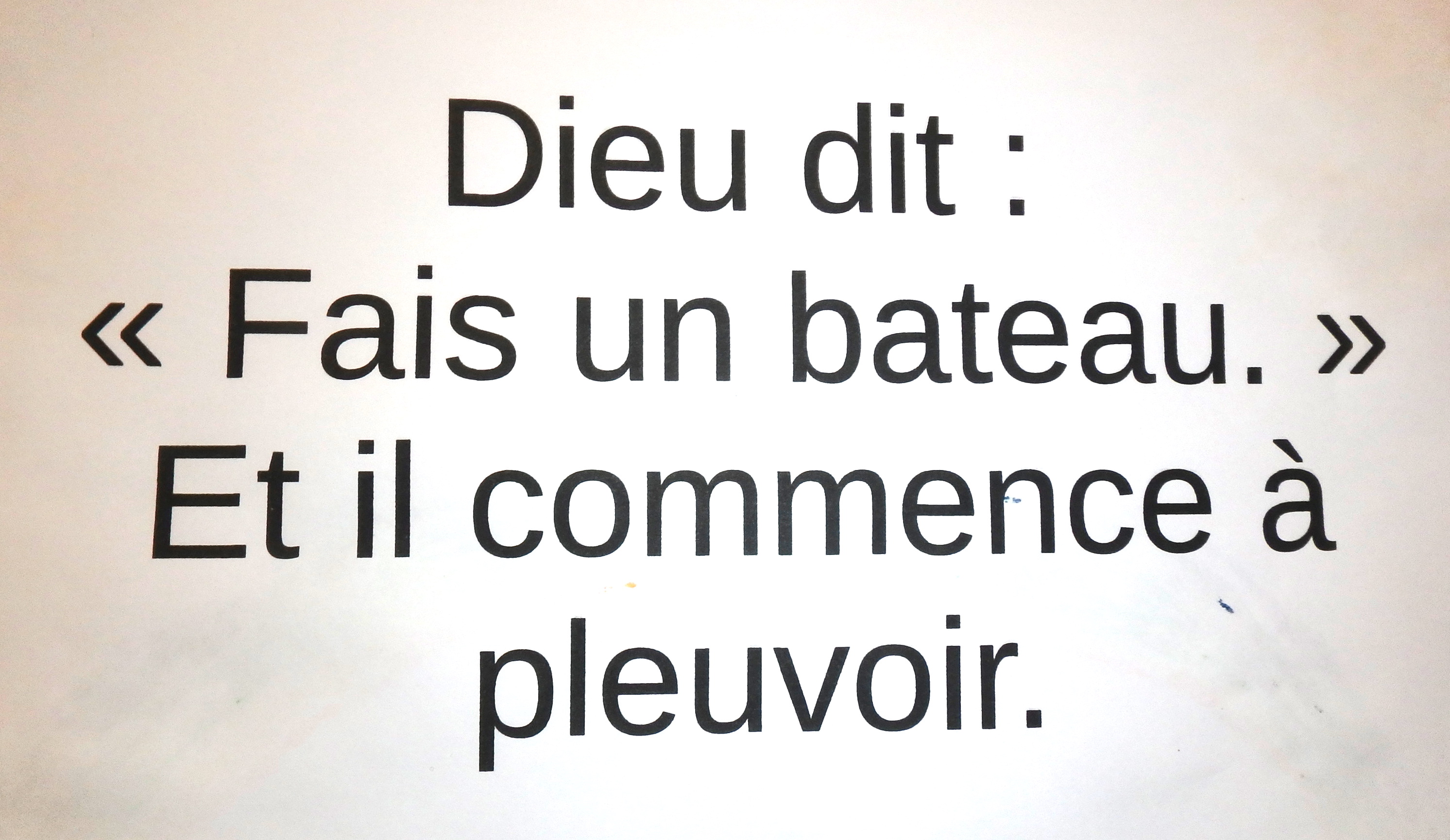 Là, le processus a été un peu différent. Noé avait fait un dessin représentant l’Arche de Noé, puis il en a fait un autre un peu différent, puis il s’est mis à en dessiner un certain nombre en s’exclamant : je sais, je vais faire un livre !!!