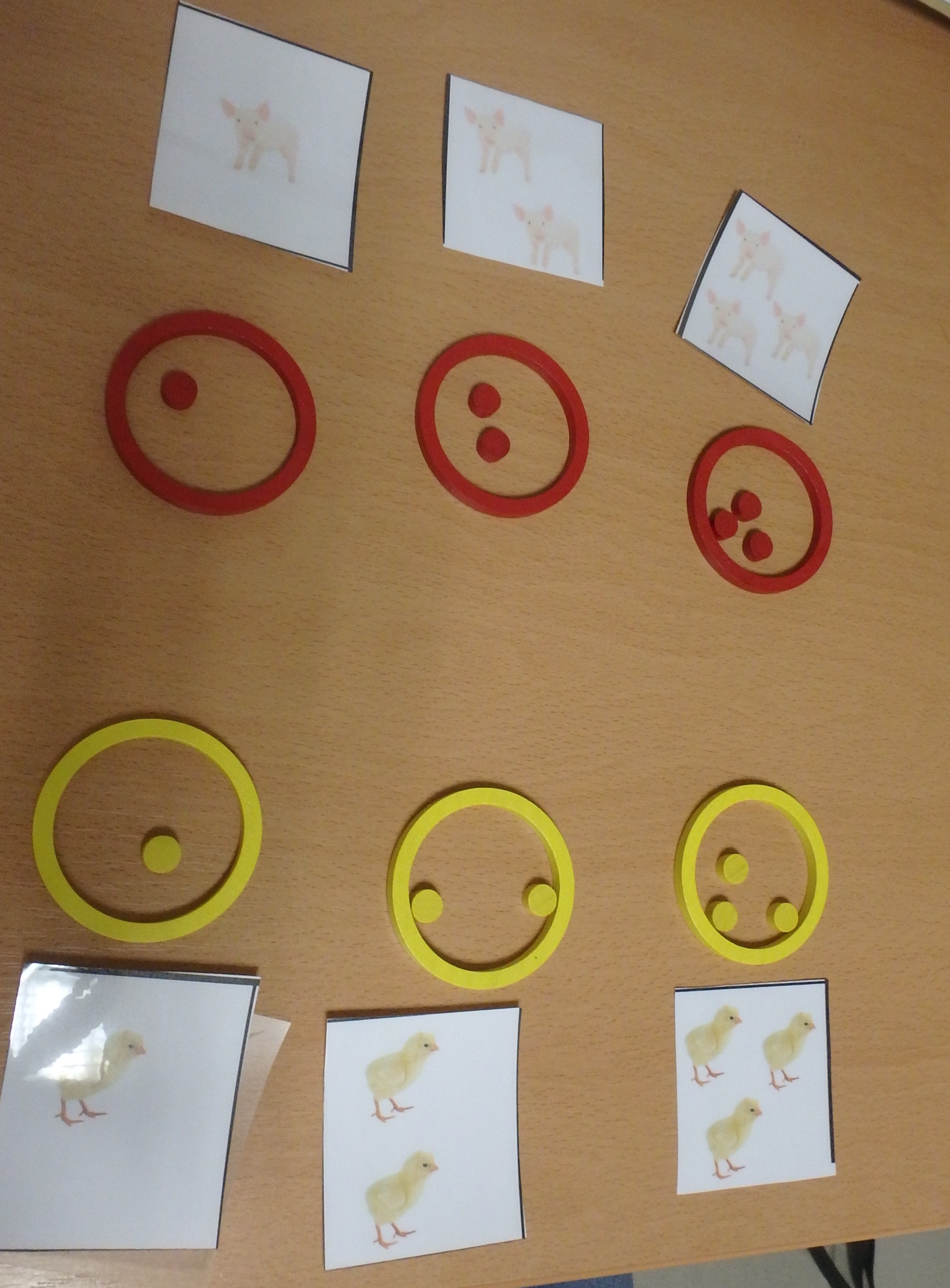 Placer dans l’anneau le même nombre de points que de boutons (ah ben tiens, Decroly encore le boutons ! )