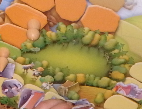 Noé qui continue aussi ses petits mondes : ici un parc d’attraction avec grande roue, montagne russe, manège, auto tamponneuses, piscine à boules , manège avec les chaises qui tournent et s’envolent (si si, tout ça, je vous assure !!!)