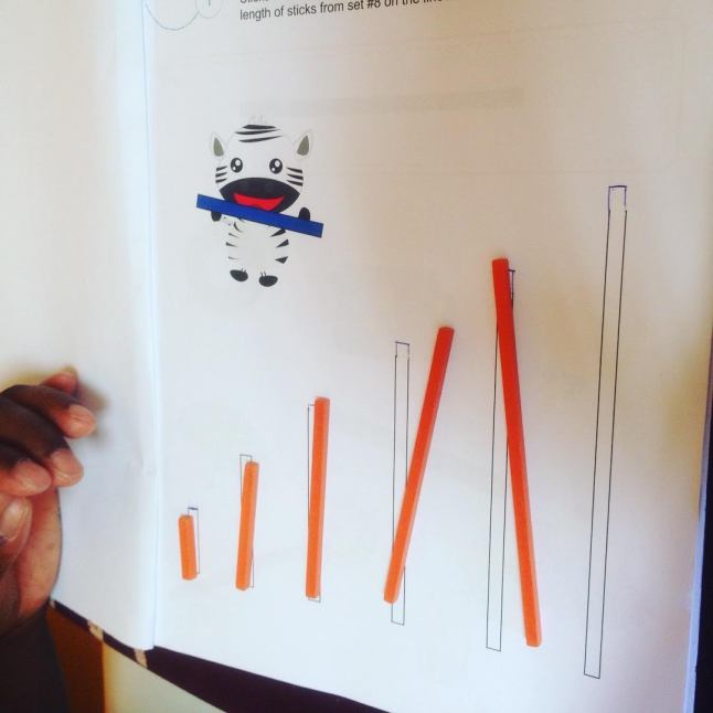 On travaille avec les bâtonnets … sur une fiche Spielgaben … On place les bâtonnets au bon endroit selon leur taille …