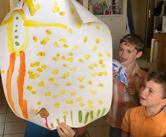 Pour cette activité, il ne s’agit pas de dire à l’enfant : voici la peur voici la joie mais de montrer une oeuvre à l’enfant, de discuter avec lui de ce qu’il ressent, de l’associer à une marionnette en essayant d’expliquer pourquoi cette oeuvre représente la joie ou la peur. Et il n’y a pas de bonne réponse, ce que l’un pensera comme joie, l’autre trouvera peut-être que c’est la sérénité par exemple !