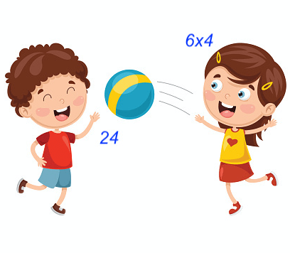 18 – Mais on peut aussi apprendre en mouvement, avec tout son corps ! On peut par exemple faire un petit jeu à 2 ou 3 (ou même plus) : on lance la balle en disant un calcul (6×4), celui qui la reçoit doit donner le résultat puis proposer un autre calcul en lançant la balle à quelqu’un d’autre.