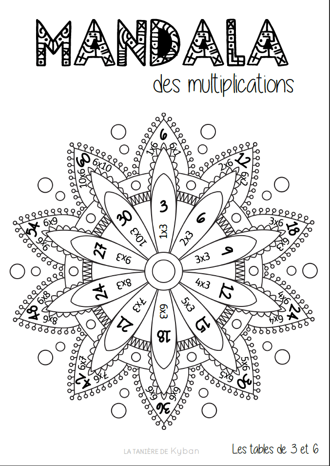 30 – En restant dans le domaine du coloriage, on peut également trouver des mandalas sur les tables de multiplication qui permettent d’aborder différemment et d’une manière plus artistique les liens entre les calculs. Vous trouverez des coloriages de mandalas et des explications sur leurs constructions sur le site de la tanière de Kyban ainsi que d’autres liens sur les mandalas sur cette page.