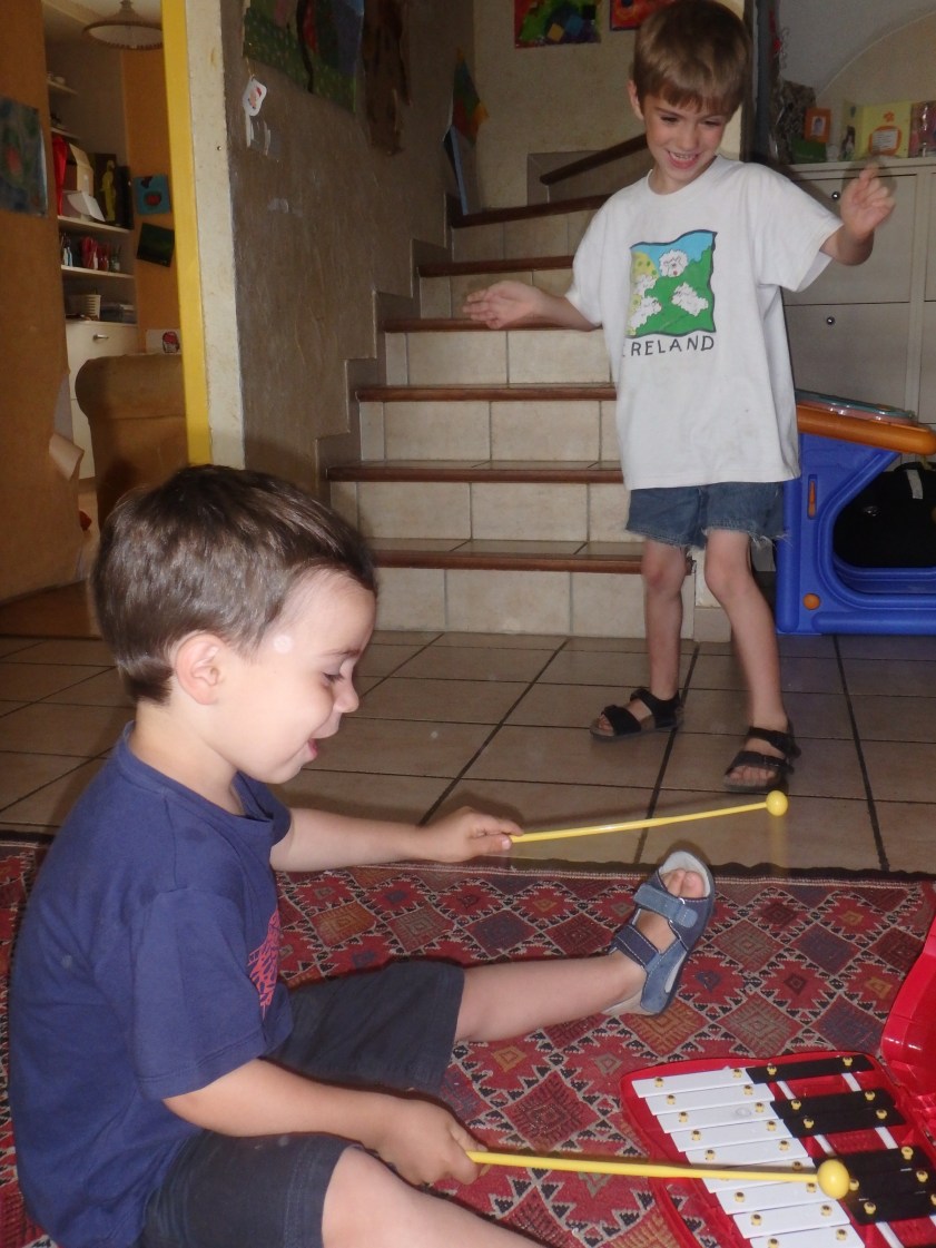 16 – Danse au rythme du xylophone ou du tambourin joué par une autre personne puis au contraire joue de l’instrument en respectant le rythme du danseur.