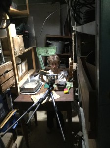 Et puis deuxième journée, décor et ambiance complètement différents … Tourné cette fois dans le garage. Quelques consignes pour la précision des gestes de Noé, en rythme …
