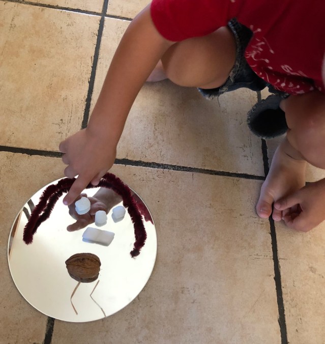 49 – Joue à placer des personnages, des cubes ou des objets naturels sur un miroir posé à plat