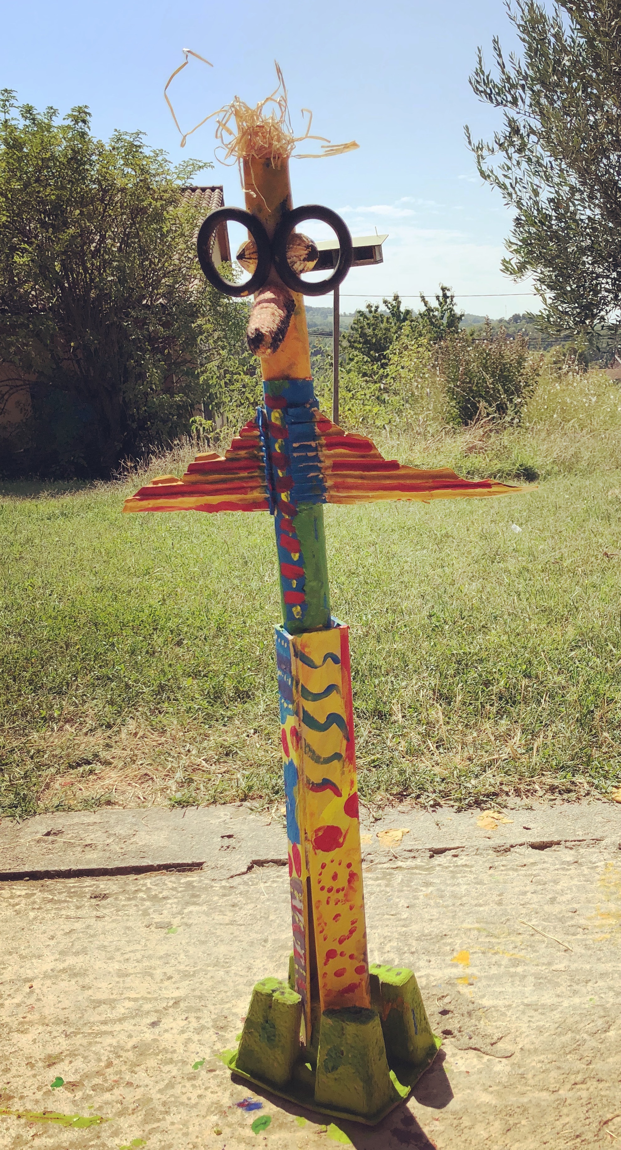 50 – Fabrique plusieurs pavés (parallélépipèdes) de papier puis en les collant ensemble construis un personnage que tu pourras ensuite décorer