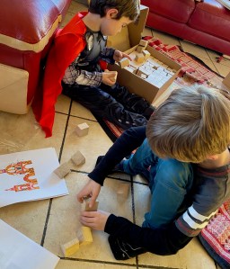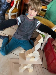 Alors, c’est parti pour de longues heures de jeux et de créations architecturales ! Et je pense qu’il se mettra vite à en faire des plans quand il sera satisfait ! ( ile me dit qu’il veut améliorer encore !). Et puis il pourra également utiliser la caisse de kaplas que nous avons à la maison pour faire des façades, des escaliers … et compléter ses constructions.