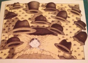Encore un merveilleux livre d’Anthony Browne, donc, avec en plus des allusions artistiques au surréalisme et notamment à l’oeuvre de Magritte !