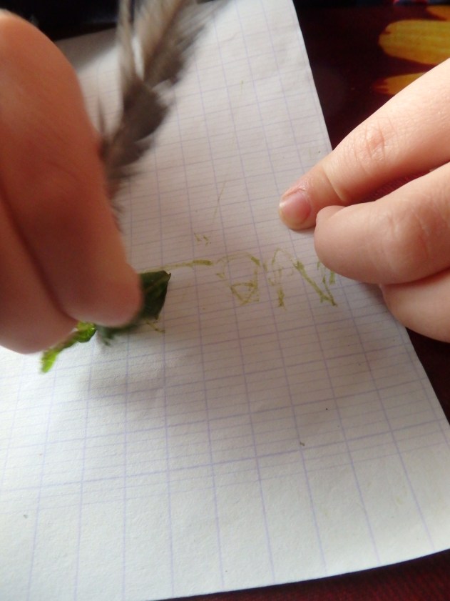 113 – Peins en utilisant comme pinceaux des éléments naturels : fleurs, feuilles, herbes, cailloux, bois …