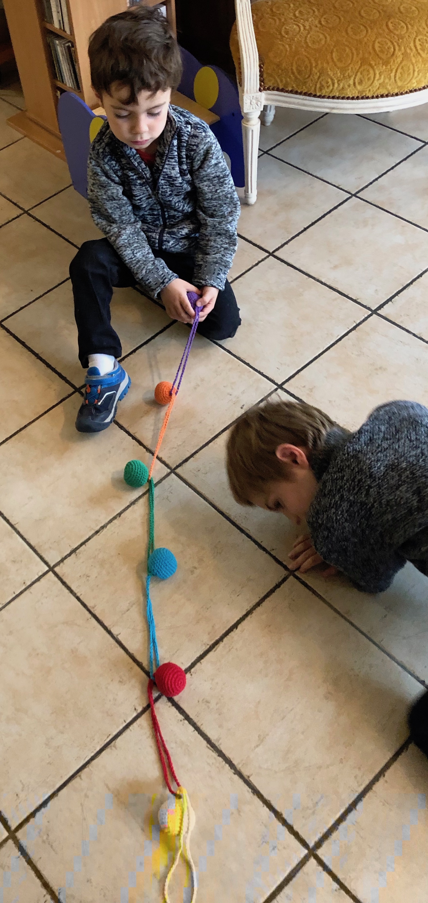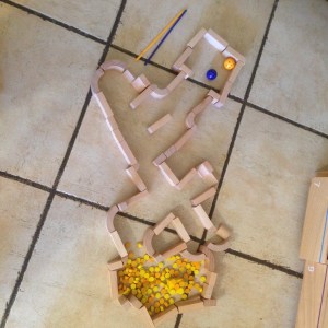 Noé toujours fan des labyrinthes !!! Aller jusqu’au trésor en poussant la boule avec un bâtonnet !