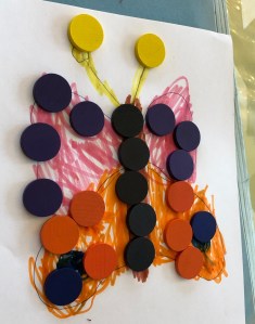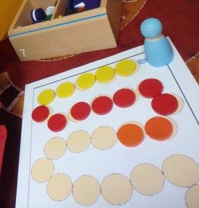 Puis coloriage de la bonne couleur et jetons de la même couleur placés dessus.