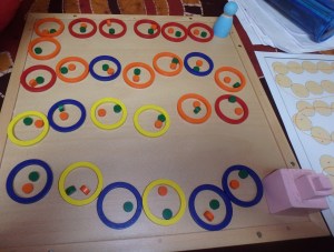 Placer dans l’anneau le même nombre de points que de boutons (ah ben tiens, Decroly encore le boutons ! )