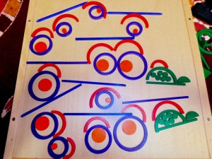 Et à partir du dessin, faire d’autres lignes encore mais avec les bâtonnets.