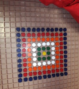 Placer les cubes comme moi puis placer un carré coloré sur chaque cube