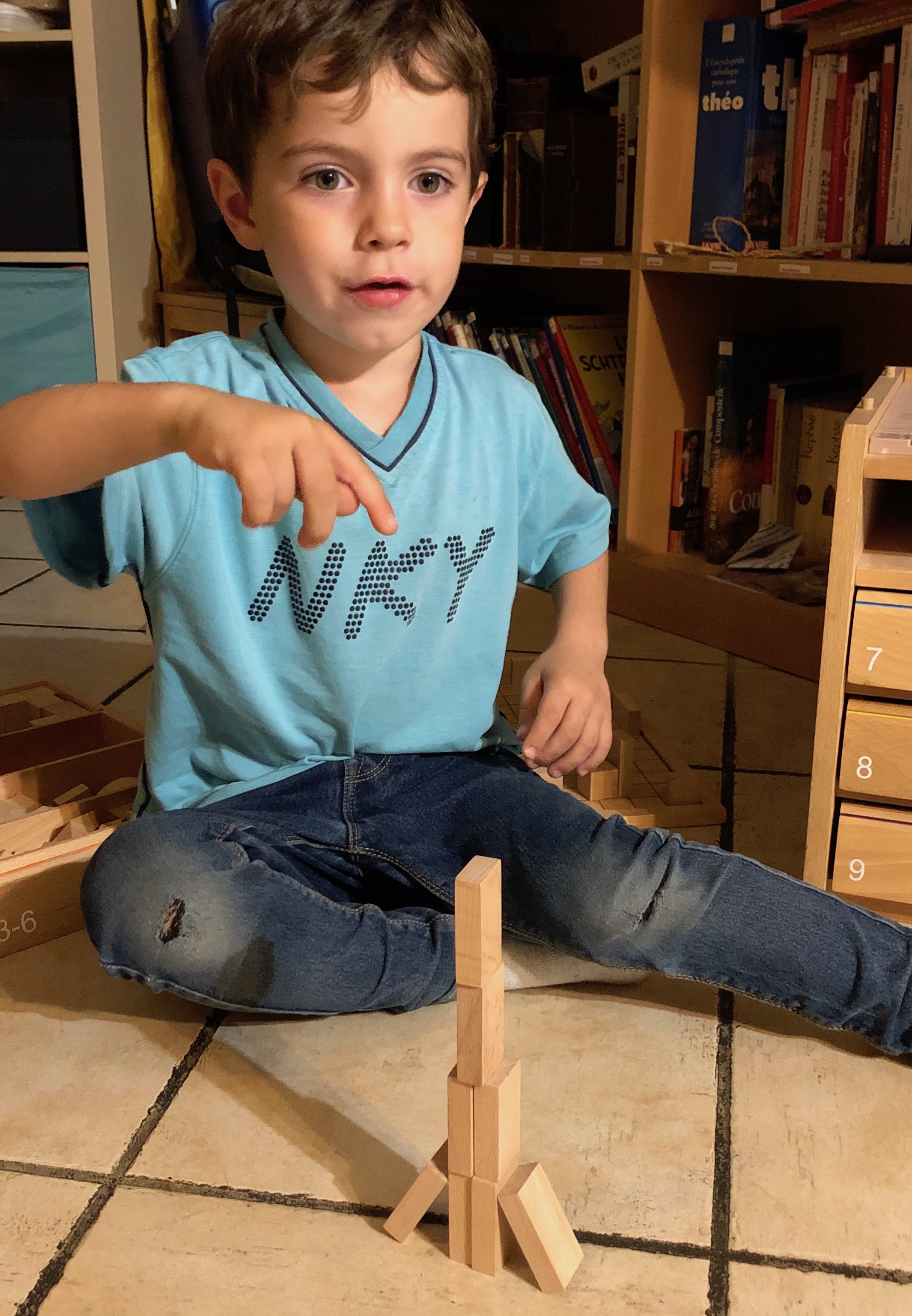 Un des jeux préférés de Firmin : faire des maisons en associant des solides.