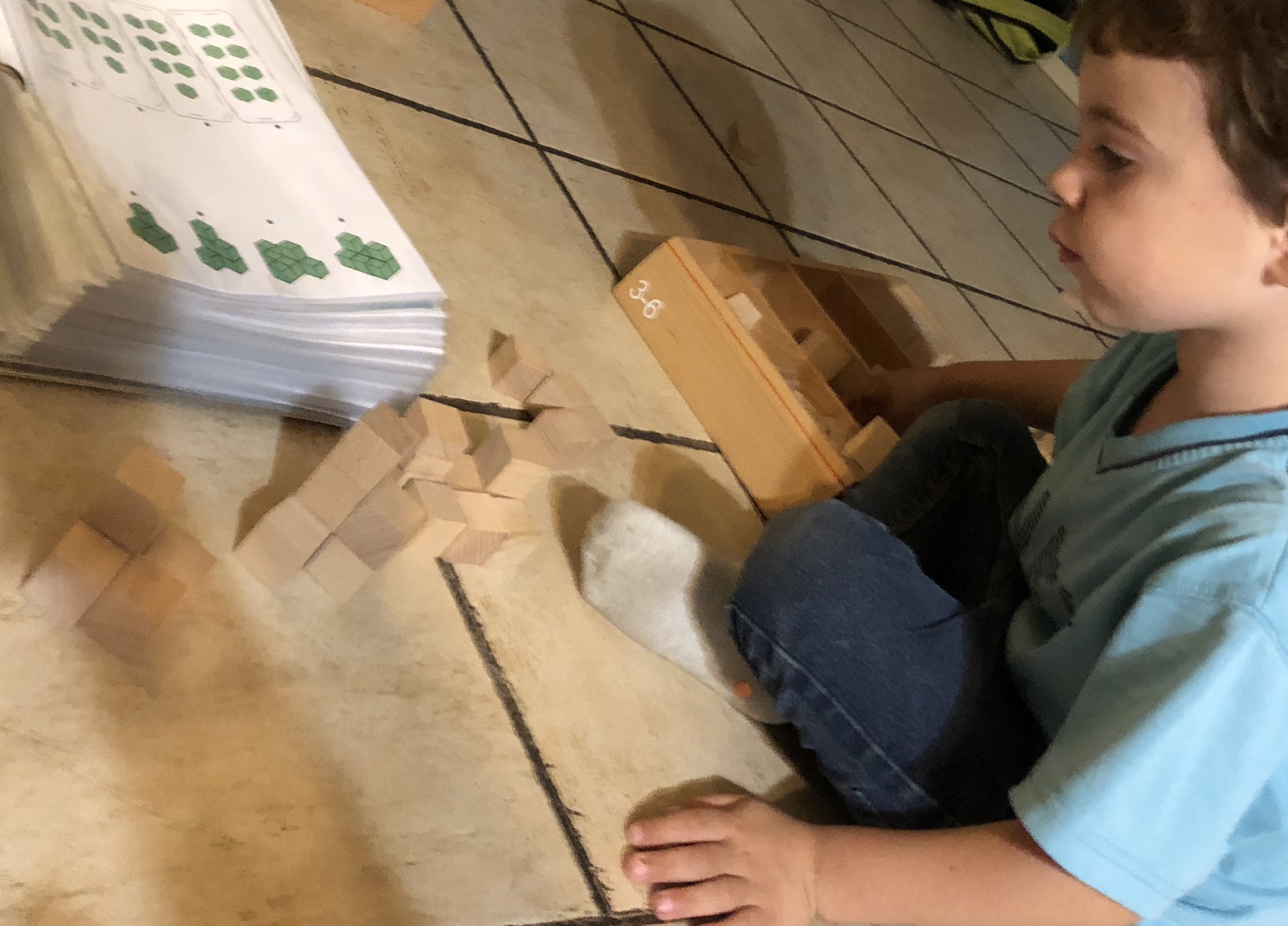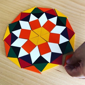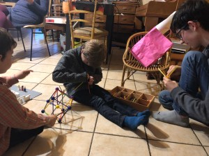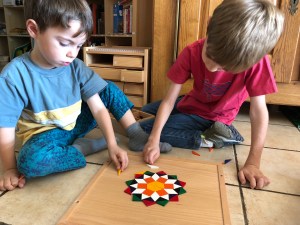 Et puis hier soir encore, on n’a pas pris de photo, mais Noé s’est intéressé à juste quatre losanges pour voir tout ce qu’on pouvait juste avec ces quatre formes ! C’était super intéressant ! La géométrie en jouant …