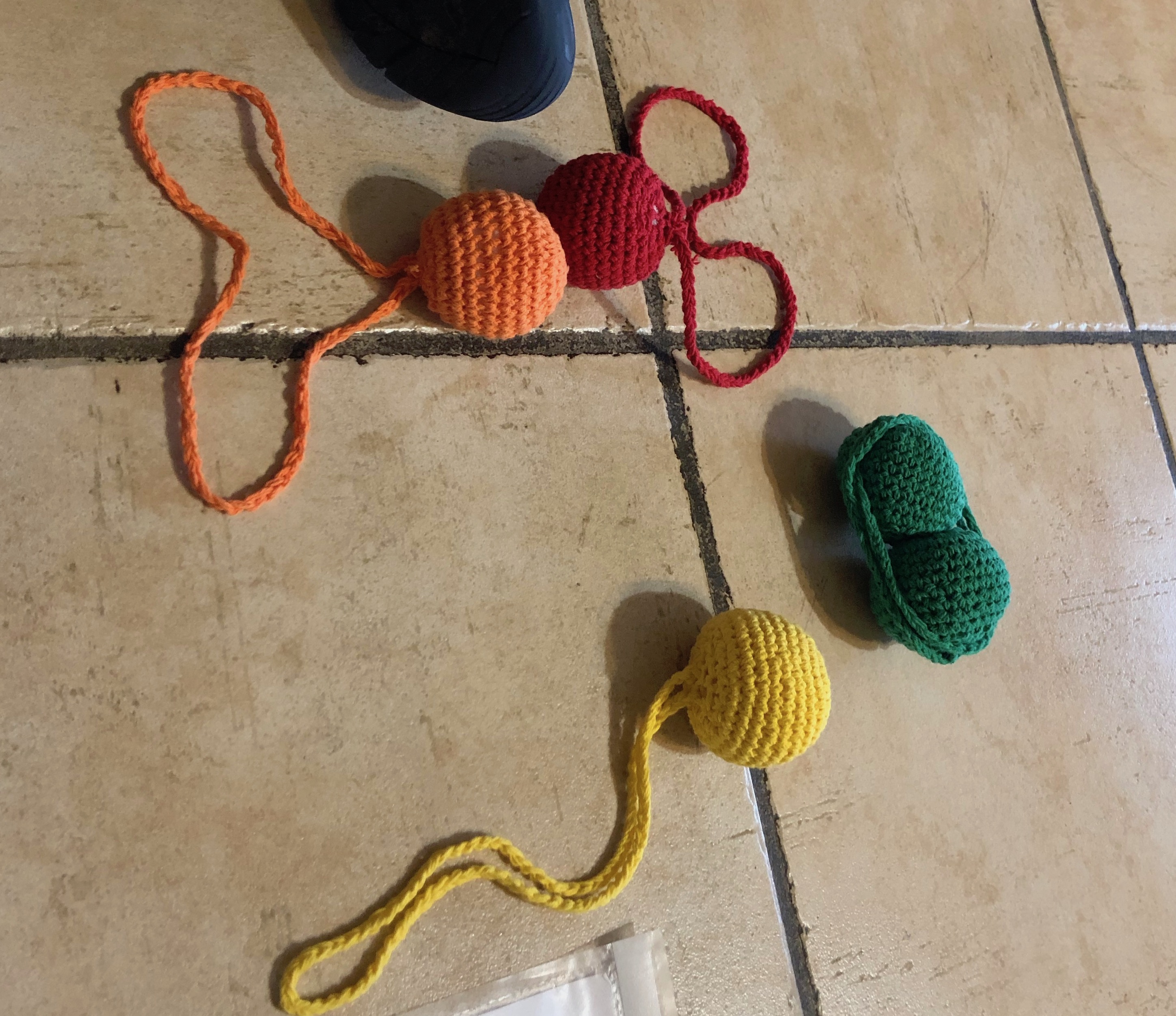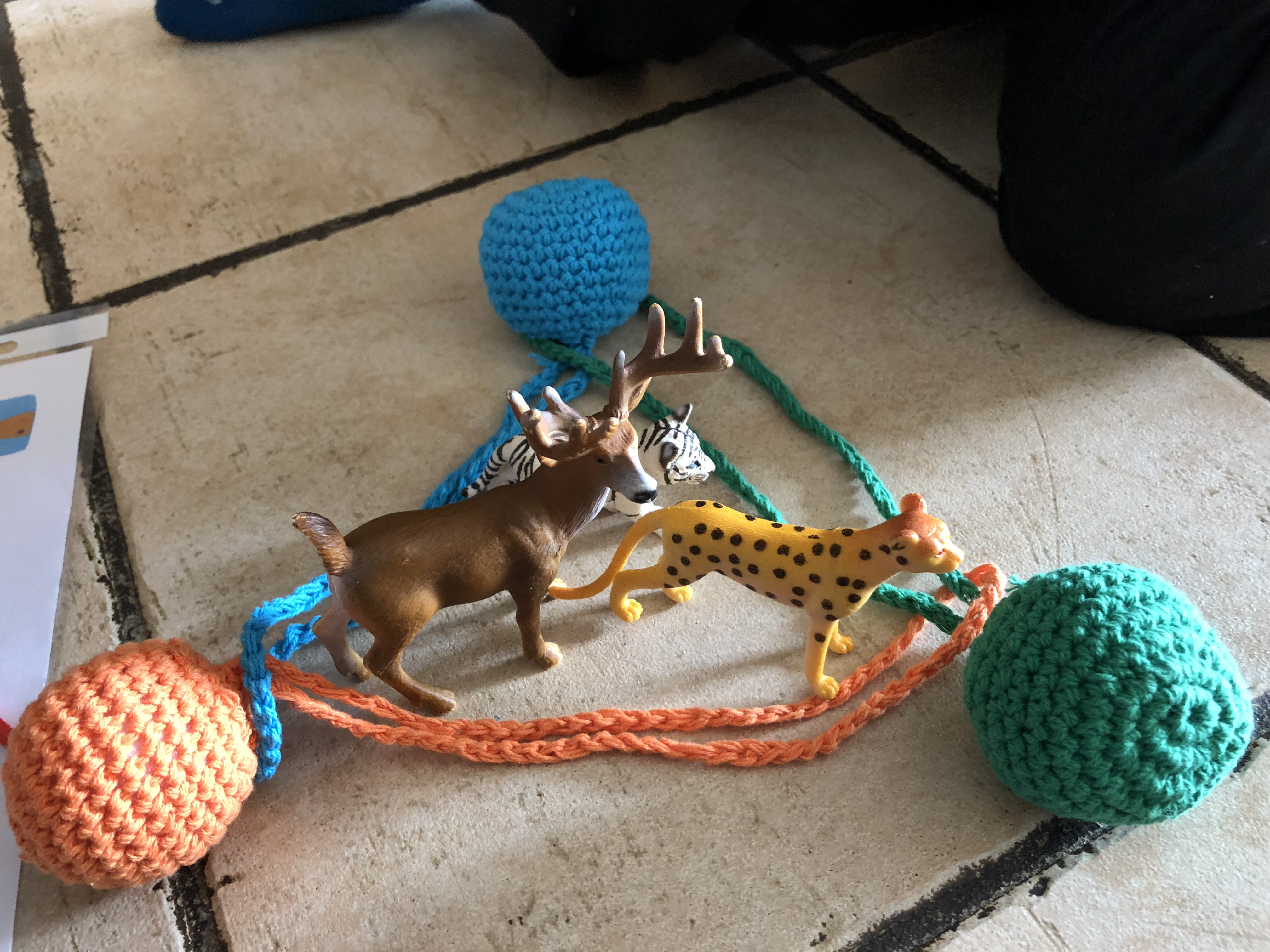 Mêler différents dons : les balles, les cordelettes, les bâtonnets, des points pour toujours plus de créations !