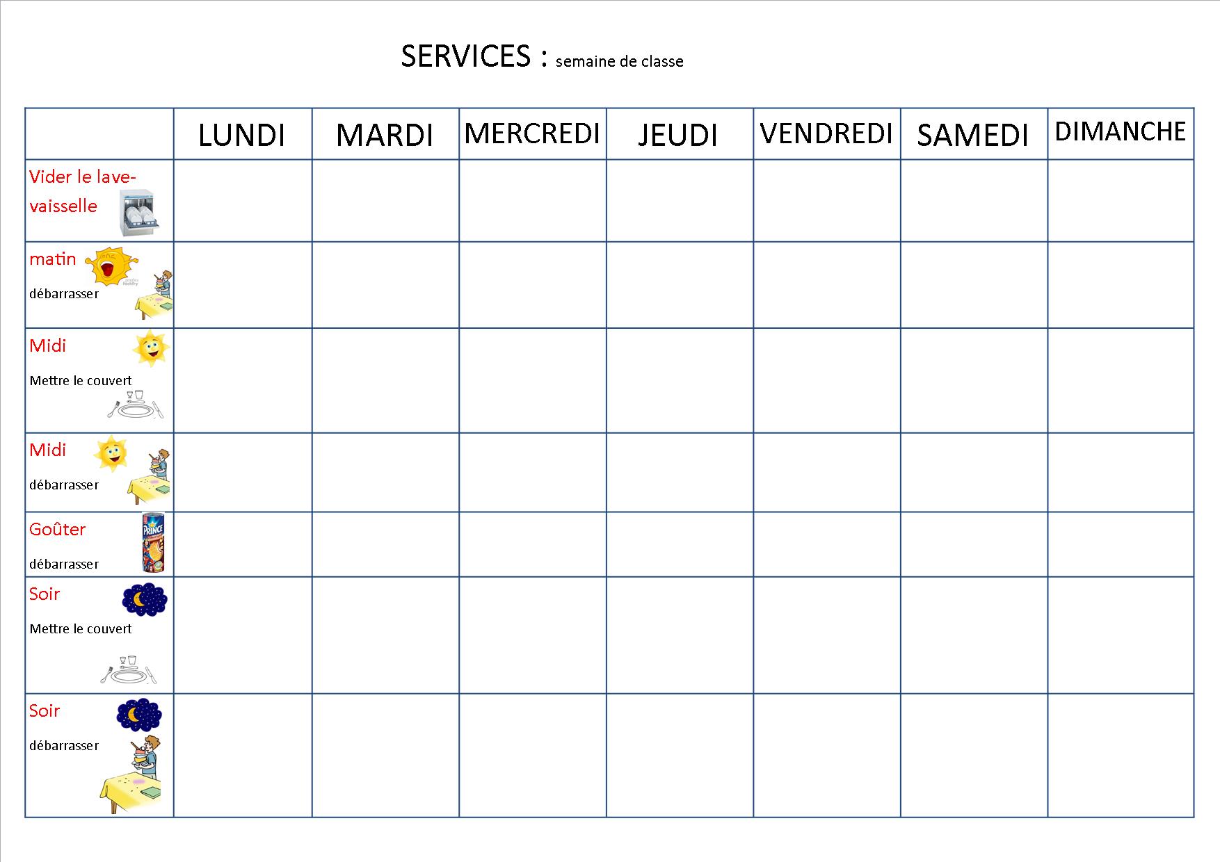Je vous avais déjà présenté mon tableau de services dans un article précédent pour mes trois grands pour qu’ils débarrassent la table, mettent le couvert, vident le lave-vaisselle …